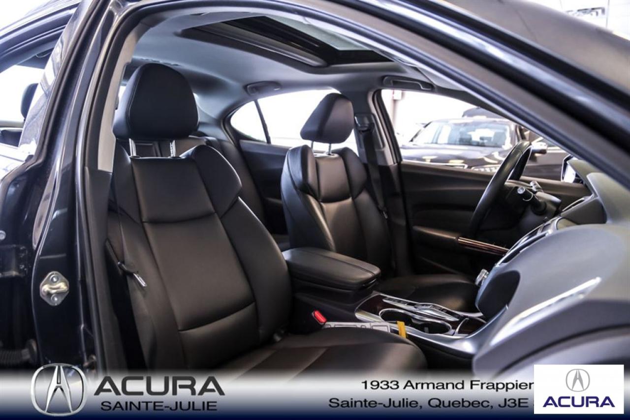 Acura TLX V6 2015\n\nRégulateur de vitesse, Servo-direction, Essuie-glaces intermittents, Contrôle de stabilité, Lecteur CD, Coffre - Ouverture à distance, Déverrouillage à distance, Sièges électriques, Vitres électriques, Siège mémoire, Volant ajustable, Radio satellite, Radio AM/FM, Rétroviseurs, Volant gainé de cuir, Phares automatiques, Contrôle de traction, Système d'alarme, Régulateur de température, Boiseries intérieures, Pare-soleil avec miroir illuminé, Antivol, Coussins gonflables, Sièges baquets, Climatisation\n\n*** SEULEMENT 112$ / SEM SUR 72 MOIS À 5.99% AUCUN COMPTANT, TOUT INCLUS, TAXES ET GARANTIE COMPLETE 48 MOIS OU 80 000 KM INCLUSES DANS LE VERSEMENT **** Inspection complète 152 points--financement sur place--votre véhicule d'échange évaluer en 15 minutes maximum!!!2eme chance au crédit accepté. TOUS NOS PRIX SONT TRANSPARENT ET DÉJA NÉGOCIÉ AU MEILLEUR PRIX DU MARCHÉ! LE PRIX QUE VOUS VOYEZ EST LE PRIX QUE VOUS PAYER SANS SURPRISES ! ****************************************************************************** VENEZ PROFITER DE L'INVENTAIRE DE VÉHICULES D'OCCASIONS DU PLUS GRAND CONCESSIONNAIRE ACURA DE LA RIVE-SUD. TOUS NOS VÉHICULES SONT INSPECTÉS POUR QUE VOUS PUISSIEZ BÉNÉFICIER D'UN ACHAT EN TOUTE CONFIANCE. NOUS AVONS UNE GAMME DE VÉHICULES USAGÉES DIVERSIFIÉES AVEC RAPPORT DE CARPROOF EN MAIN ET SURTOUT À DES PRIX COMPÉTITIFS!! NOUS DÉSSERVONS LE GRAND MONTRÉAL ET LA RIVE-SUD. SI NOUS NE L'AVONS PAS, NOUS LE TROUVERONS!!! NOTRE ÉQUIPE EST LA A VOTRE SERVICE PAR COURRIEL 6 JOURS SUR 7. N'HÉSITEZ PAS À NOUS CONTACTER CAR NOUS SOMMES DISPONIBLES POUR RÉPONDRE À VOS DEMANDES AU 1-866-765-6707 OU AU ACURASAINTEJULIE.COM ---- *** ONLY 112$ / WEEK ON 72 MONTH AT 5.99% AND 0$ CASHDOWN, ALL INCLUDED, TAXES AND A COMPLETE 48 MONTH / 80 000 KM WARRANTY (1482$) INCLUDED IN THE PAYMENT *** All of our vehicules are thoroughly inspected with a 152 points inspection so you can have a WORRY FREE PURCHASE. All Financing options available, even 2nd chance and 3rd chance credit. We welcome trades-in and evaluation is done within 20 minutes plus on-spot delivery available. ALL OUR PRICES ARE FULLY TRANSPARENT AND ALREADY NEGOCIATED AT THE BEST MARKET PRICE. THE PRICE YOU SEE IS THE PRICE YOU PAY WITHOUT SUPRISES! ******************************************************************************** COME TAKE ADVANTAGE OF THE USED CAR INVENTORY OF THE BIGGEST ACURA DEALER ON THE SOUTH SHORE.WE HAVE A DIVERSIFIED INVENTORY WITH AN AVAILABLE CARPROOF REPORT, BUT MOST IMPORTANTLY WE HAVE THE MOST COMPETITIVE PRICES ON THE MARKET!!! OUR TEAM IS THERE TO SERVE YOU 6 DAYS OF THE WEEK. DON'T HESITATE TO CONTACT US SINCE WE ARE HERE TO ANSWER ALL YOUR QUESTIONS AT 1-866-765-6707 OR AT ACURASAINTEJULIE.COM
