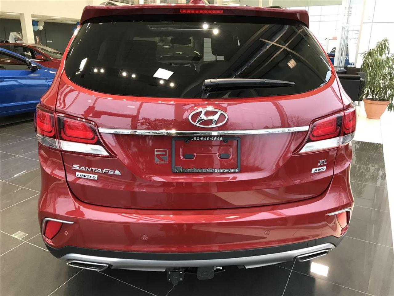 DÉMONSTRATEUR SANTA FE XL LIMITED AWD 6 PASSAGERS. TIRE JUSQU'À 5 000 LBS. TOUT ÉQUIPÉ : SYSTÈME DE NAVIGATION. SYSTÈME DE SONS INFINITY, TOIT OUVRANT PANORAMIQUE, SIÈGES EN CUIR CHAUFFANTS ET VENTILÉS, DÉTECTEUR D'ANGLES MORTS, CAMÉRA DE RECUL ET BEAUCOUP PLUS. RIENDEAU HYUNDAI Un concessionnaire établi depuis 1993 ayant vue 3 générations. Ouvert le samedi de 10h à 16h Rejoignez-nous en tout temps au 514-709-2886. Vous manquez de temps pour venir nous visiter? Laissez-nous le savoir et profitez de notre service de visite à domicile ou au travail selon votre horaire! Sachez que tous nos véhicules sont inspectés par nos techniciens certifiés Hyundai et qu'un rapport Carproof est disponible en tout temps sur demande. Venez faire l'expérience Riendeau Hyundai et choisissez parmi notre vaste inventaire de véhicules d'occasion avec des taux certifiés à partir de 2.9% et demandez à propos de nos promotions sur nos pneus d'hivers. À proximité de Montréal, Longueuil, Brossard, St-Hubert, St-Hyacinthe, Drummondville, Saint-Basile-le-Grand, Boucherville, Varennes et Chambly. Venez constatez pourquoi tant de clients choisissent Riendeau Hyundai et rien d'autre. ================================================================ A dealer establish since 1993 and with 3 generations. Open on Saturday from 10h to 16h. Call us anytime at 514-709-2886. Lacking time to visit us? Let us know and benefit of our home and office service following your schedule. Know that our vehicles are inspected by our Hyundai certified technicians and that a Carproof report is available at anytime on demand. Come meet the experience Riendeau Hyundai and chose within our massive inventory of used car with certified interest rate starting at 2.9% and ask us about our promotion on winter tires. Close to Montreal, Longueuil, Brossard, St-Hubert, Ste-Hyacinthe, Drummondville, Saint-Basile-le-Grand, Boucherville, Varennes and Chambly. Let us show you why so many customer choose Riendeau Hyundai and nothing else!