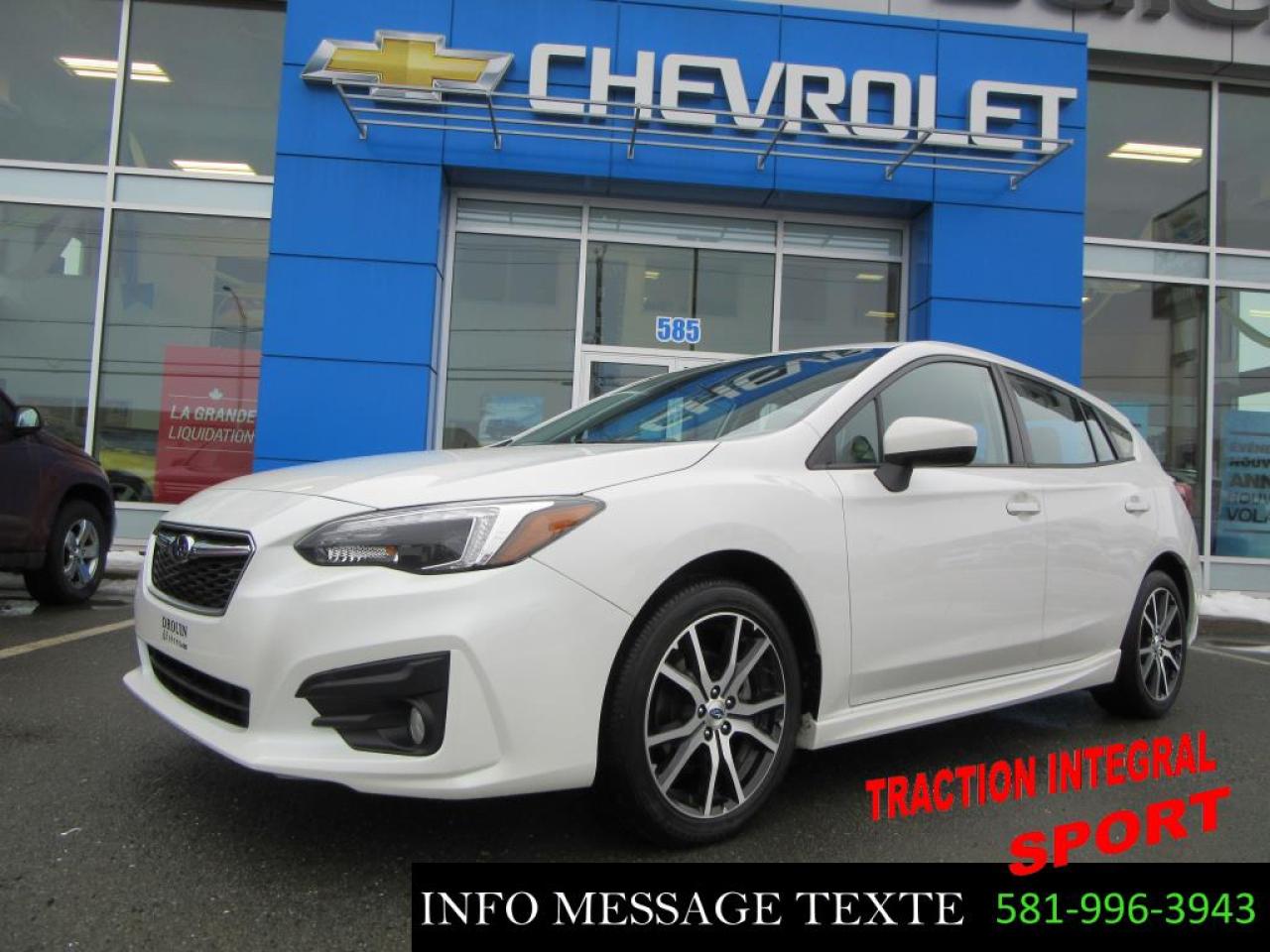 SPORT, TOIT OUVRANT, PNEUS HIVER ET ETE INCLUS, VÉHICULE INSPECTÉ ET CERTIFIÉ, GARANTIE SUBARU JUSQU'AU 5 MAI 2022, FINANCEMENT SUR PLACE AVEC TAUX TRES AVANTAGEUX. Contactez-nous par MESSAGE TEXTE au 581-996-3943, pour plus d'information.