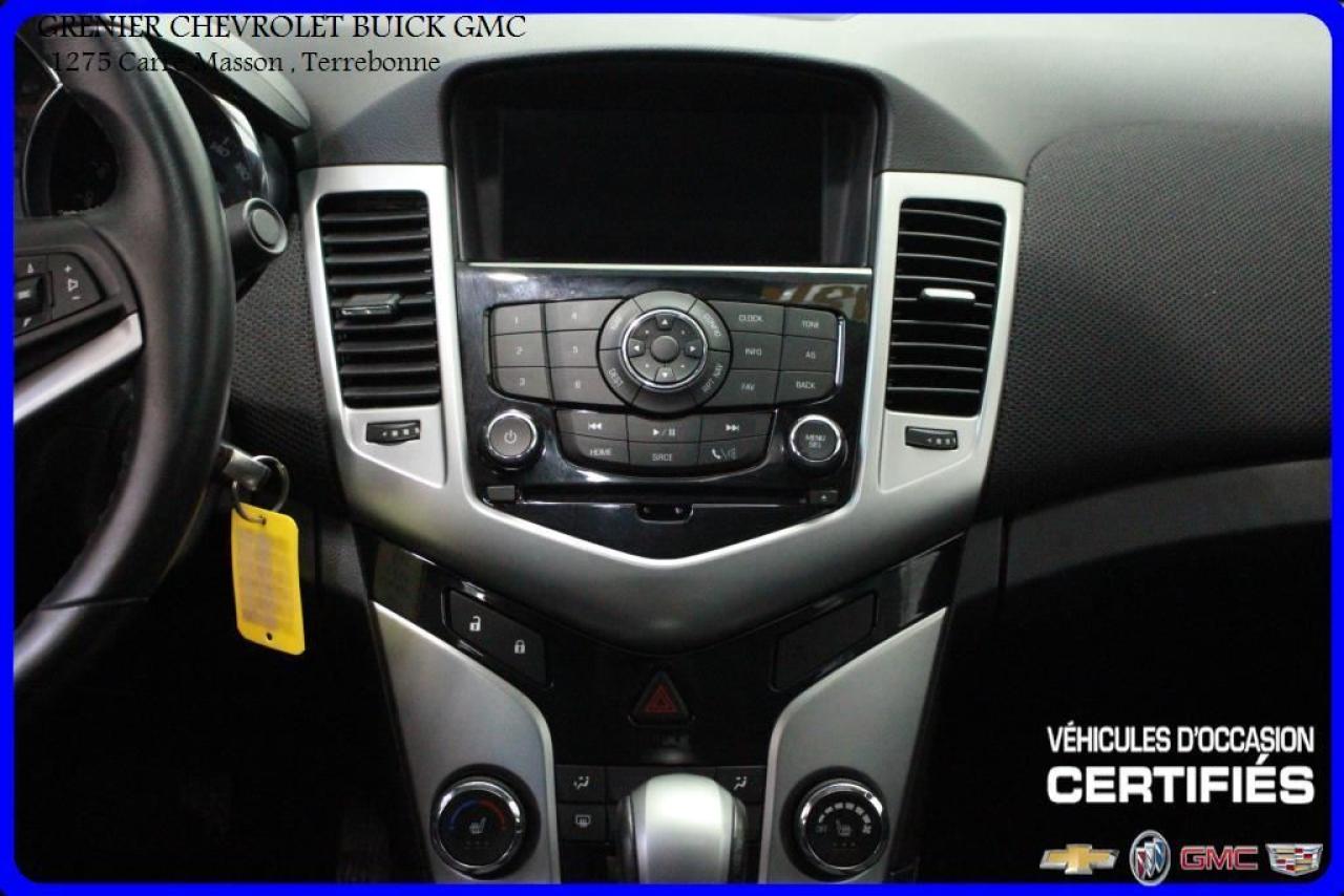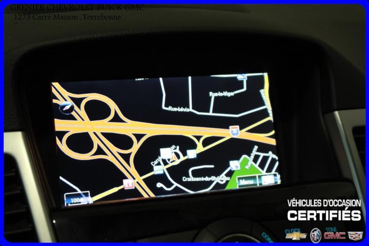 JAMAIS ACCIDENTÉ + MAGS 18 SYSTÈME DE SON PIONEER DÉMARREUR À DISTANCE + navigation + cuir + toit ouvrant + sièges chauffants + caméra de recul + jupes + ailerons + écran tactile + commandes vocales + commandes audio au volant + régulateur de vitesse + volant inclinable + air climatisé Garantie jusqu'au 24 Février 2019 ou 160 000 kilomètres À voir absolument : un superbe CHEVROLET CRUZE 2014, à vendre chez GRENIER OCCASION CHEVROLET BUICK GMC NOUS SOMMES OUVERT 7 JOURS PAR SEMAINE POUR MIEUX VOUS SERVIR 1275 CARRÉ MASSON , TERREBONNE Nous sommes situé à 20 minutes Saint-Eustache/ Saint-Jérôme/Laval/Repentigny/montréal. Programme de véhicules d' occasion certifiés. Rapport Carproof disponible gratuitement. Inspection en 150 points. Le prix affiché inclus un rabais de 500 $ avec un financement.