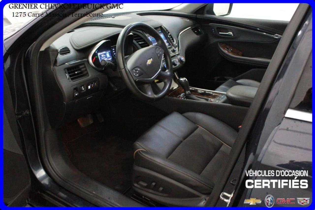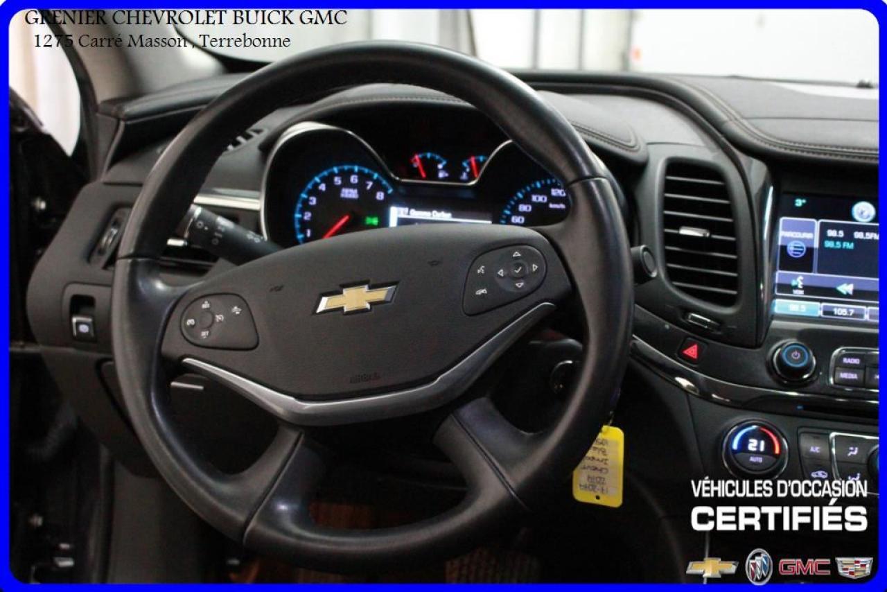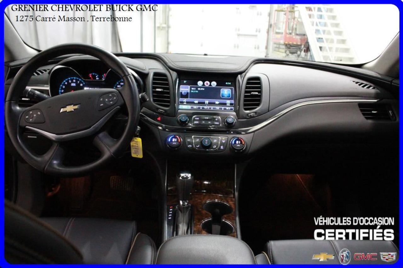 JAMAIS ACCIDENTÉ + AVERTISSEUR D'ANGLE MORT AVERTISSEMENT PRÉ-COLLISION + cuir et suède + sièges chauffants + caméra de recul + radar de recul + écran tactile + commandes vocales + commandes audio au volant + régulateur de vitesse + groupe électrique + air climatisé Garantie jusqu'au 30 Avril 2018 ou 160 000 kilomètres À voir absolument : un superbe CHEVROLET IMPALA 2014, à vendre chez GRENIER OCCASION CHEVROLET BUICK GMC NOUS SOMMES OUVERT 7 JOURS PAR SEMAINE POUR MIEUX VOUS SERVIR 1275 CARRÉ MASSON , TERREBONNE Nous sommes situé à 20 minutes Saint-Eustache/ Saint-Jérôme/Laval/Repentigny/montréal. Programme de véhicules d' occasion certifiés. Rapport Carproof disponible gratuitement. Inspection en 150 points. Le prix affiché inclus un rabais de 500 $ avec un financement.