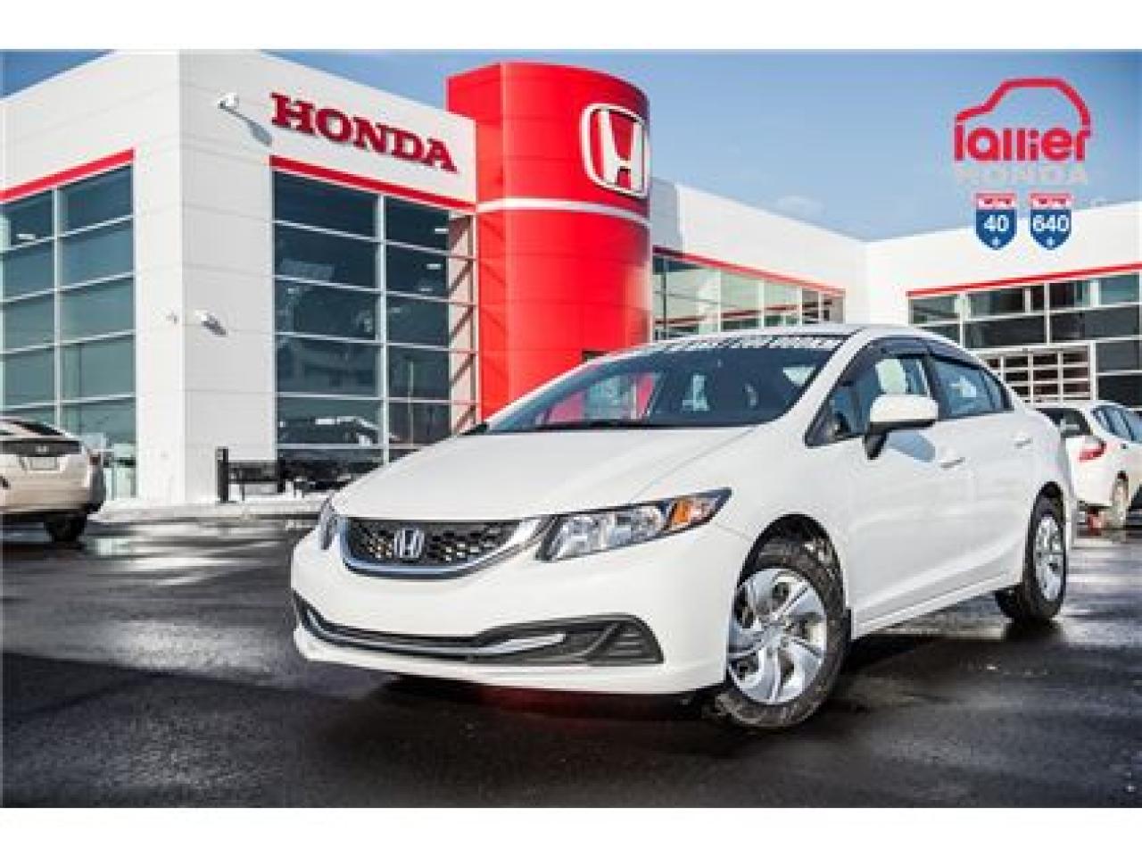 HONDA CIVIC LX 2014 , GARANTIE COMPLÈTE , VÉHICULE INSPECTÉ ET CERTIFIÉ , EN EXCELLENTE CONDITION , TOUT ÉQUIPÉ , DÉMARREUR À DISTANCE , SIÈGES CHAUFFANTS , JAMAIS ACCIDENTÉ ! PASSEZ NOUS VOIR EN CONCESSION ! Votre concessionnaire Lallier Honda 40-640 vous offre des véhicules d'occasion pour tous les budgets au meilleur prix. Choisissez parmi Acura, BMW, Buick, Chevrolet, Dodge, Ford, GMC, Honda, Hyundai, Jeep, Kia, Lexus, Mazda, Mercedes-Benz, Mitsubishi, Nissan, Pontiac, Saturn, Subaru, Suzuki, Toyota, Volkswagen. Nos véhicules usagés sont offerts à un taux de financement avantageux en plus d'offrir la garantie Lallier exclusive sur le groupe motopropulseur. Chaque véhicule est en excellente condition mécanique et esthétique, c'est garanti! Nous fournissons le rapport d'accident CarProof pour vous assurer une tranquillité d'esprit supplémentaire. Consultez la fiche du véhicule d'occasion qui vous intéresse pour en connaître les détails techniques et en faire le visionnement sous plusieurs angles.Votre concessionnaire Lallier Honda Repentigny vous offre des véhicules d'occasion pour tous les budgets au meilleur prix. Choisissez parmi Acura, BMW, Buick, Chevrolet, Dodge, Ford, GMC, Honda, Hyundai, Jeep, Kia, Lexus, Mazda, Mercedes-Benz, Mitsubishi, Nissan, Pontiac, Saturn, Subaru, Suzuki, Toyota, Volkswagen. Nos véhicules usagés sont offerts à un taux de financement avantageux en plus d'offrir la garantie Lallier exclusive sur le groupe motopropulseur. Chaque véhicule est en excellente condition mécanique et esthétique, c'est garanti! Nous fournissons le rapport d'accident CarProof pour vous assurer une tranquillité d'esprit supplémentaire. Consultez la fiche du véhicule d'occasion qui vous intéresse pour en connaître les détails techniques et en faire le visionnement sous plusieurs angles.