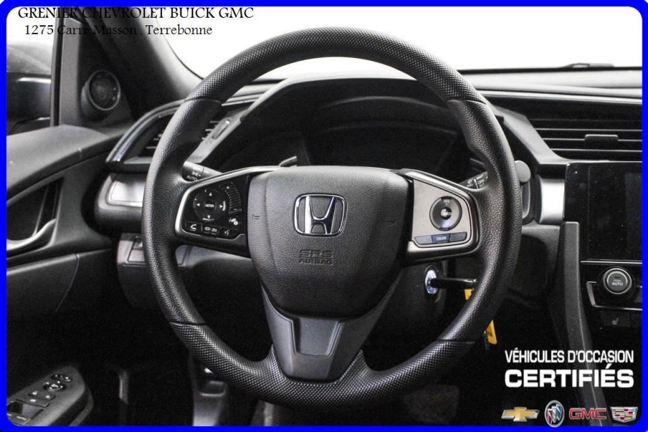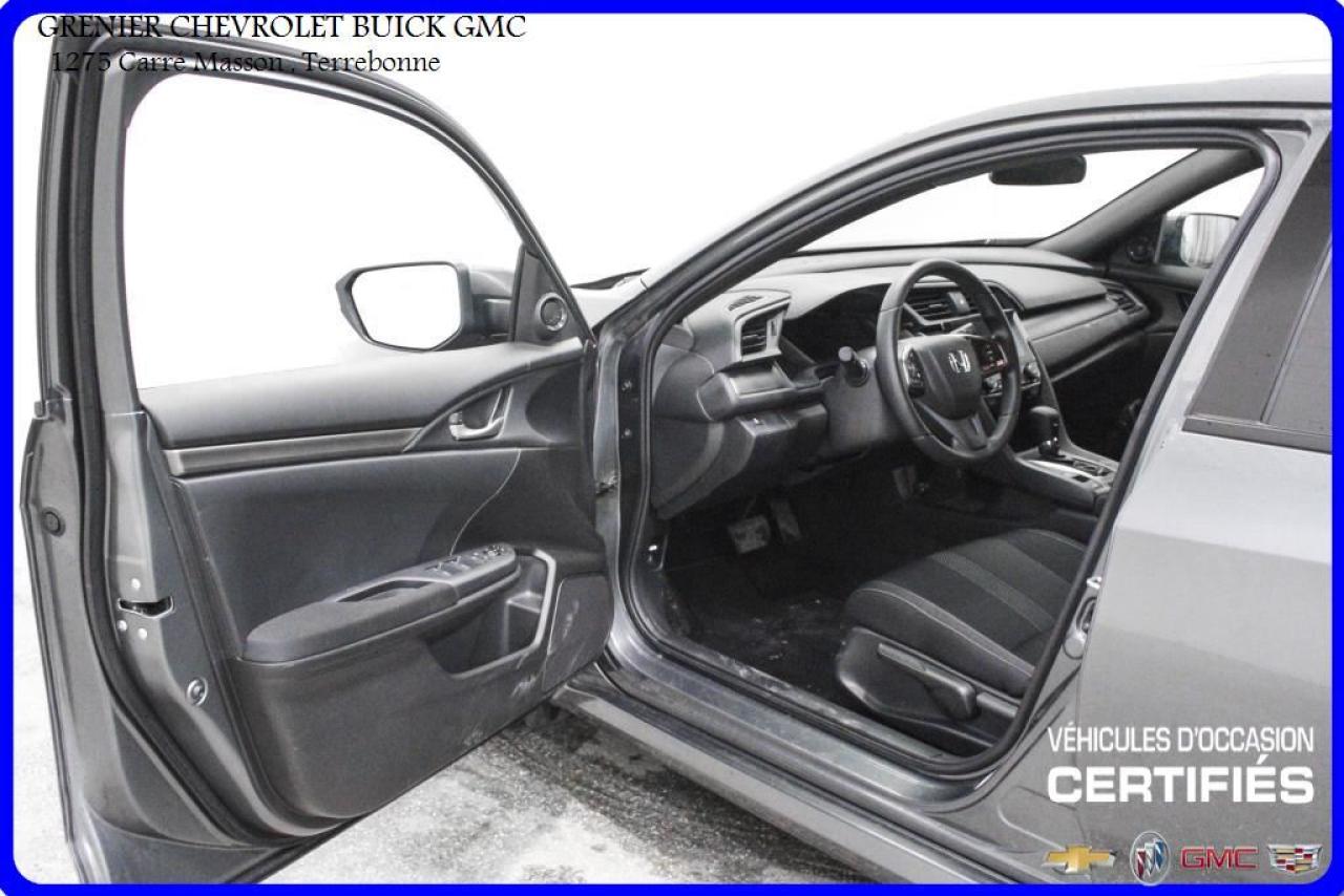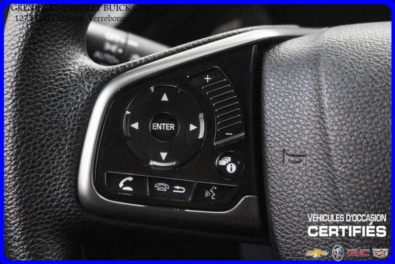 JAMAIS ACCIDENTÉ + ÉCRAN TACTILE AILERON JUPES 4 PNEUS D'ÉTÉ 4 PNEUS D'HIVER + caméra de recul + sièges chauffants + air climatisé + commandes vocales + commandes audio au volant + régulateur de vitesse + groupe électrique Garantie jusqu'au 30 Novembre 2021 ou 100 000 kilomètres À voir absolument : un superbe HONDA CIVIC 2017, à vendre chez GRENIER OCCASION CHEVROLET BUICK GMC NOUS SOMMES OUVERT 7 JOURS PAR SEMAINE POUR MIEUX VOUS SERVIR 1275 CARRÉ MASSON , TERREBONNE Nous sommes situé à 20 minutes Saint-Eustache/ Saint-Jérôme/Laval/Repentigny/montréal. Programme de véhicules d' occasion certifiés. Rapport Carproof disponible gratuitement. Inspection en 150 points. Le prix affiché inclus un rabais de 500 $ avec un financement.