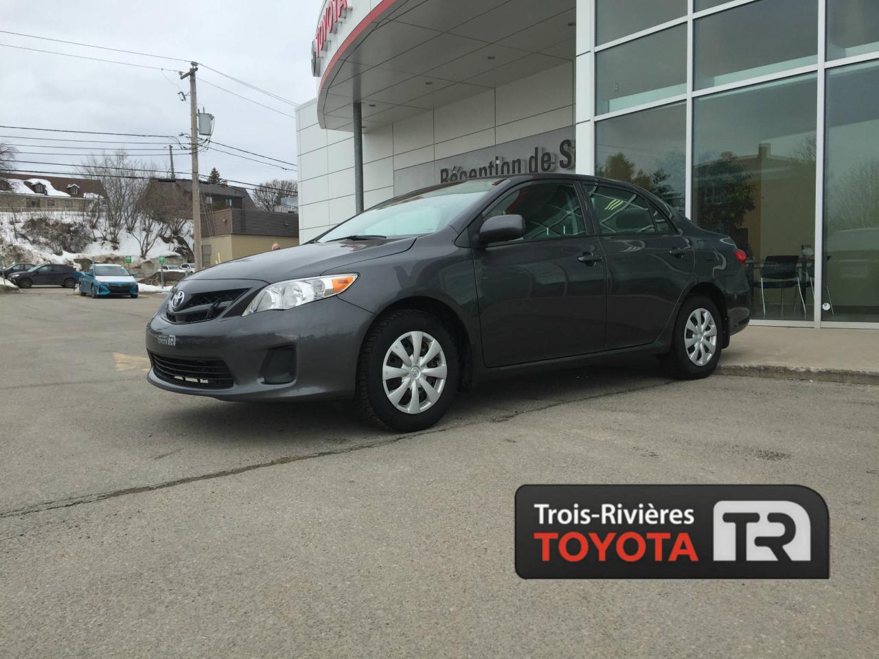 TOYOTA COROLLA CE 2013, MOTEUR DE 1.8 LITRES ET 4 CYLINDRES, TRANSMISSION AUTOMATIQUE, AIR CLIMATISÉ, DÉVERROUILLAGE ÉLECTRIQUE DES PORTIÈRES, RÉGULATEUR DE VITESSE, MIROIRS CHAUFFANTS ET ÉLECTRIQUES, RADIO AM/FM AVEC LECTEUR CD, PORT USB ET PRISE AUXILIAIRE... Vous êtes à la recherche d'un véhicule fiable et économique? Cette Corolla 2013 est faites pour vous. Venez rencontrer nos experts afin de faire l essai routier d un de nos véhicules dès aujourd'hui. Obtenez le rapport d'historique Carproof sur demande. Chez Trois-Rivieres Toyota, vous bénéficiez d un vaste choix de véhicules d occasion de toutes marques tel que Honda, Nissan, Hyundai, Ford, Mazda, Mitsubishi, Kia et plus encore! Le plus grand concessionnaire Toyota de la région de la Mauricie et Centre-du-Québec ! Situé entre Québec et Montréal, Trois-Rivières Toyota vous offre la première, deuxième et troisième chance au crédit. Visitez notre site web pour voir notre inventaire de voitures d occasion : www.trtoyota.ca.