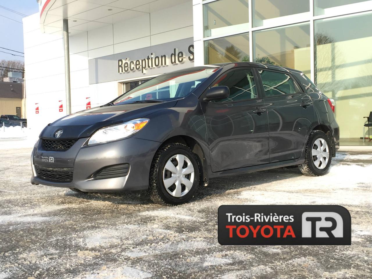 TOYOTA MATRIX 2013, MOTEUR DE 1.8 LITRES ET 4 CYLINDRES, TRANSMISSION AUTOMATIQUE, AIR CLIMATISÉ, GROUPE ÉLECTRIQUE, RÉGULATEUR DE VITESSE, RADIO AM/FM AVEC LECTEUR CD ET BLUETOOTH, MIROIRS ÉLECTRIQUES ET CHAUFFANTS... Chez Trois-Rivieres Toyota, vous bénéficiez d'un vaste choix de véhicules d'occasion de toutes marques tel que Honda, Nissan, Hyundai, Ford, Mazda, Mitsubishi, Kia et plus encore! Le plus grand concessionnaire Toyota de la région de la Mauricie et Centre-du-Québec ! Situé entre Québec et Montréal, Trois-Rivières Toyota vous offre la première, deuxième et troisième chance au crédit. Venez rencontrer nos experts afin de faire l'essai routier d'un de nos véhicules. Obtenez le rapport d'historique Carproof sur demande Visitez notre site web pour voir notre inventaire de voitures d'occasion : www.trtoyota.ca.