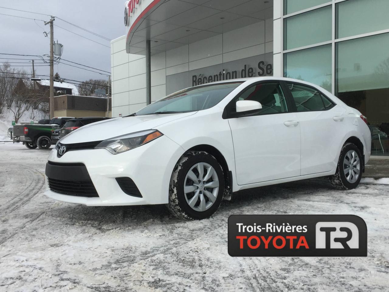 TOYOTA COROLLA LE 2014, MOTEUR DE 1.8 LITRES ET 4 CYLINDRES, TRANSMISSION AUTOMATIQUE, AIR CLIMATISÉ, CAMÉRA DE RECUL, GROUPE ÉLECTRIQUE, RÉGULATEUR DE VITESSE, SIÈGES AVANT CHAUFFANTS... Vous êtes à la recherche d'un véhicule fiable et économique? Cette Corolla 2014 est faites pour vous. Venez rencontrer nos experts afin de faire l essai routier d un de nos véhicules dès aujourd'hui. Obtenez le rapport d'historique Carproof sur demande. Chez Trois-Rivieres Toyota, vous bénéficiez d un vaste choix de véhicules d occasion de toutes marques tel que Honda, Nissan, Hyundai, Ford, Mazda, Mitsubishi, Kia et plus encore! Le plus grand concessionnaire Toyota de la région de la Mauricie et Centre-du-Québec ! Situé entre Québec et Montréal, Trois-Rivières Toyota vous offre la première, deuxième et troisième chance au crédit. Visitez notre site web pour voir notre inventaire de voitures d occasion : www.trtoyota.ca.