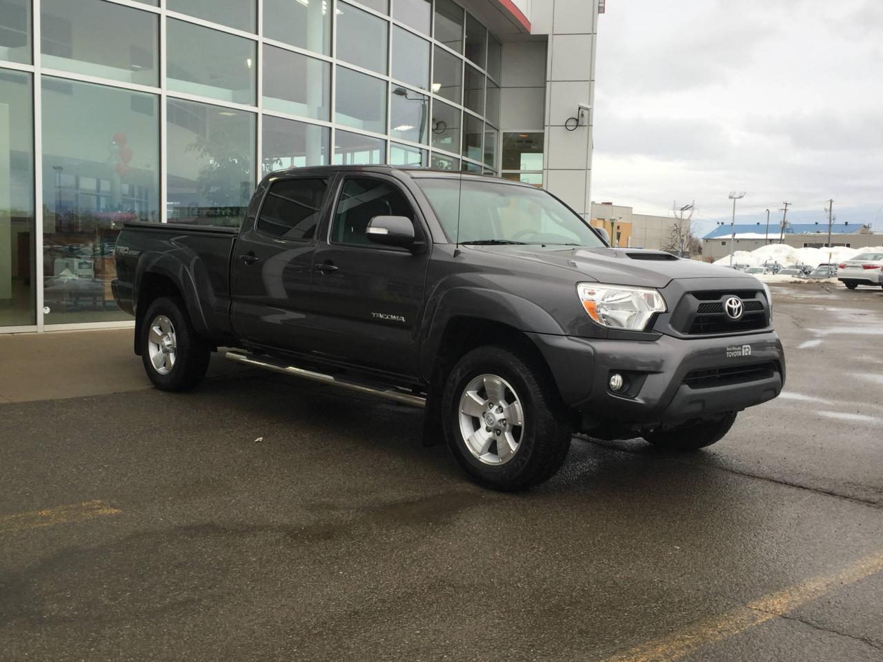 TOYOTA TACOMA TRD SPORT 2015, MOTEUR V6 DE 4L, 4 ROUES MOTRICES, CABINE DOUBLE, TRANSMISSION AUTOMATIQUE, COUVRE-CAISSE SOUPLE, JANTES EN ALLIAGE, MARCHEPIEDS, SIÈGES AVANT CHAUFFANTS, PHARES ANTIBROUILLARD, CAMÉRA DE RECUL, AIR CLIMATISÉ, GROUPE ÉLECTRIQUE, RÉGULATEUR DE VITESSE... Chez Trois-Rivieres Toyota, vous bénéficiez d'un vaste choix de véhicules d'occasion de toutes marques tel que Honda, Nissan, Hyundai, Ford, Mazda, Mitsubishi, Kia et plus encore! Le plus grand concessionnaire Toyota de la région de la Mauricie et Centre-du-Québec ! Situé entre Québec et Montréal, Trois-Rivières Toyota vous offre la première, deuxième et troisième chance au crédit. Venez rencontrer nos experts afin de faire l'essai routier d'un de nos véhicules. Obtenez le rapport d'historique Carproof sur demande Visitez notre site web pour voir notre inventaire de voitures d'occasion : www.trtoyota.ca.