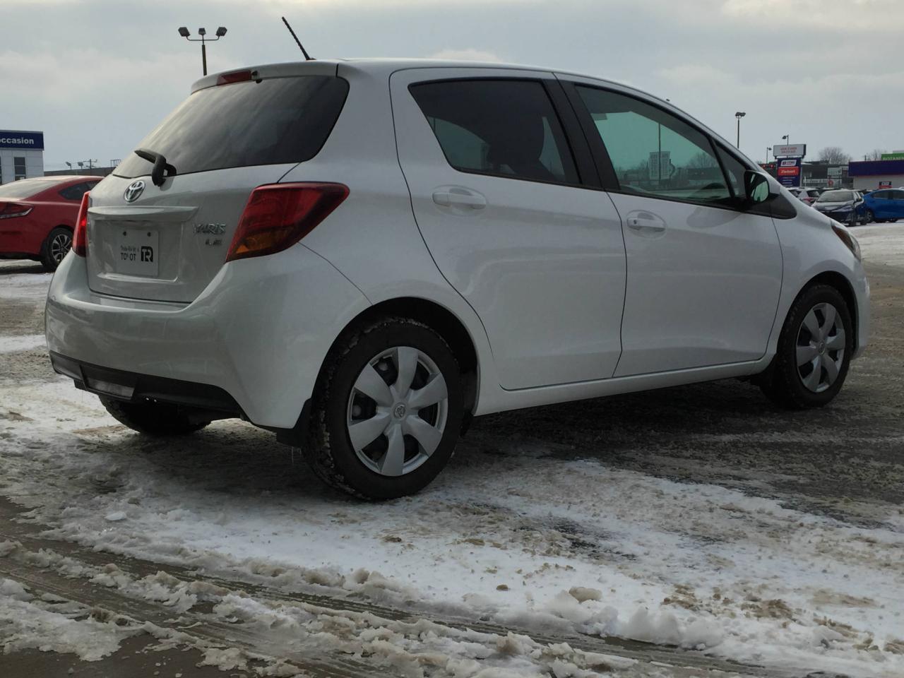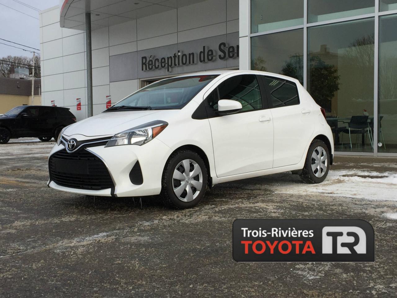 ** CERTIFIÉ ** TOYOTA YARIS LE 2015, MOTEUR DE 1.5 LITRES ET 4 CYLINDRES, TRANSMISSION MANUELLE, JANTES EN ALLIAGE, AIR CLIMATISÉ, GROUPE ÉLECTRIQUE, RÉGULATEUR DE VITESSE, COMPATIBILITÉ BLUETOOTH... Vous désirez une petite voiture compacte et très économique? Trois-Rivières vous offre cette magnifique Yaris 2015. Venez rencontrer nos experts afin de faire l'essai routier d'un de nos véhicules dès aujourd'hui. Obtenez le rapport d'historique Carproof sur demande. Chez Trois-Rivieres Toyota, vous bénéficiez d'un vaste choix de véhicules d'occasion de toutes marques tel que Honda, Nissan, Hyundai, Ford, Mazda, Mitsubishi, Kia et plus encore! Le plus grand concessionnaire Toyota de la région de la Mauricie et Centre-du-Québec ! Situé entre Québec et Montréal, Trois-Rivières Toyota vous offre la première, deuxième et troisième chance au crédit. Visitez notre site web pour voir notre inventaire de voitures d'occasion : www.trtoyota.ca.