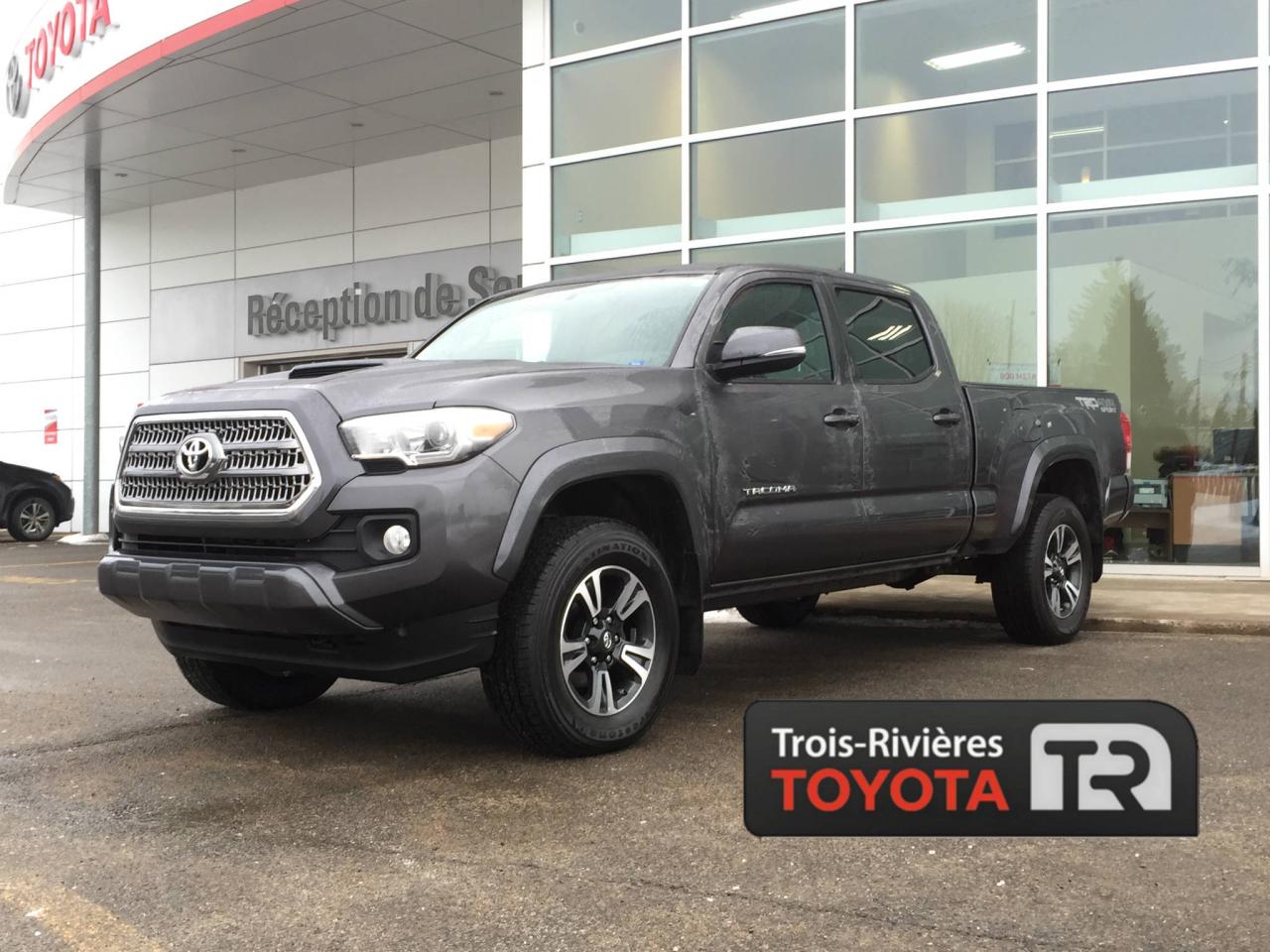 TOYOTA TACOMA TRD SPORT 4x4, CABINE DOUBLE, BOÎTE COURTE, JANTES EN ALLIAGE, MARCHEPIEDS, DÉMARRAGE BOUTON-POUSSOIR, CAMÉRA DE RECUL, PHARES ANTIBROUILLARD, SYSTÈME DE NAVIGATION, AIR CLIMATISÉ, GROUPE ÉLECTRIQUE, RÉGULATEUR DE VITESSE, ET BIEN PLUS ENCORE! Chez Trois-Rivieres Toyota, vous bénéficiez d'un vaste choix de véhicules d'occasion de toutes marques tel que Honda, Nissan, Hyundai, Ford, Mazda, Mitsubishi, Kia et plus encore! Le plus grand concessionnaire Toyota de la région de la Mauricie et Centre-du-Québec ! Situé entre Québec et Montréal, Trois-Rivières Toyota vous offre la première, deuxième et troisième chance au crédit. Venez rencontrer nos experts afin de faire l'essai routier d'un de nos véhicules. Obtenez le rapport d'historique Carproof sur demande Visitez notre site web pour voir notre inventaire de voitures d'occasion : www.trtoyota.ca.