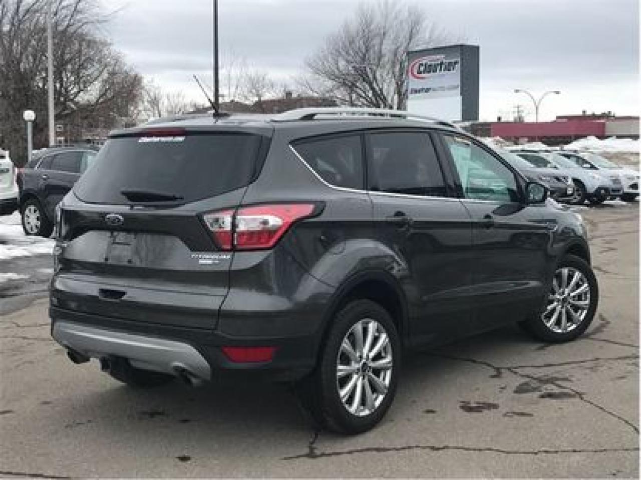 FORD ESCAPE TITANIUM 2017, JANTES ALUMINIUM, BLUETOOTH, GROUPE ÉLECTRIQUE COMPLET, NE MANQUEZ PAS CETTE OCCASION !! Financement disponible sur place ou en ligne au www.cloutierauto.com, taux dintérêt avantageux à partir de 3.9 %. 1ere, 2ème, 3ème et 4ème chance de crédit disponible. Livraison disponible à la grandeur du Québec. Cloutier automobile, en affaire depuis 1993, vous offre une expérience dachat agréable et motivante. Une équipe de travail dynamique vous accueillera avec le sourire pour vous offrir une expérience dachat de qualité professionnelle et transparente. Au plaisir de vous conter parmi notre fidèle clientèle. Financement disponible sur place au meilleur taux du marché. Commercial et crédit-bail bienvenue. 1ere, 2e et 3e chance au crédit, spécialiste sur place! Nous sommes ouverts le samedi de 10h à 15h. Cloutier auto.com est une entreprise familiale possédant une excellente réputation depuis plus de 30ans dans la région de la Mauricie. Nos véhicules sont soigneusement inspectés et nettoyés par nos techniciens qualifiés. Avant de changer de véhicule, venez rencontrer notre équipe! Cloutier auto vous offre la qualité et le service depuis maintenant 25 ans. Nous détenons un vaste inventaire de véhicules doccasions de qualité, garanties et soigneusement inspectés. Un rapport CARPROOF est inclus pour tous nos véhicules. Notre succursale de Trois-Rivières, située à 1 heure de Montréal et Québec, 45 minutes de Victoriaville et Drummondville, 30 minutes de Shawinigan et 15 minutes de Bécancour vous offre également le service de livraison partout au Québec. NOUS SOMMES OUVERTS 6 JOURS SUR 7. PRÉSENTEZ-VOUS DIRECTEMENT EN SUCCRUSALE OU PRENEZ RENDEZ-VOUS VIA EMAIL OU PAR TÉLÉPHONE. Nous offrons un financement bâti sur mesure pour vous permettre dobtenir les meilleurs taux disponibles. Que ce soit pour un 1ière, 2e ou 3e chance au crédit, nous avons le meilleur taux pour vous. FINANCEMENT APPROUVÉ À 100% Vous avez un véhicule déchange ? Nhésitez pas à soumettre une demande dévaluation sur notre site internet (cloutierauto.com) et nous vous ferons parvenir une soumission rapide. Nous avons les outils les plus performants pour nous permettre d'évaluer votre véhicule sur place et à distance. Avant de changer votre véhicule, venez nous rencontrer pour vous rendre compte de la différence que nous offrons. Visit cloutierauto.com TO SEE OUR PROMOTIONS OF THE MONTH. Cloutier auto has offered great and service for25 years. We have a large used car inventory of quality, warranty and carefully inspected. A CARPROOF report is included for all our vehicles. Our dealer in Trois-Rivières, is located 1 hour from Montreal and Quebec City, 45 minutes from Victoriaville and Drummondville, 30 minutes from Shawinigan and 15 minutes from Bécancour. We also offer delivery service throughout Quebec. WE ARE OPENED 6 DAYS OUT OF 7. GET DIRECTLY IN SUCCRUSALE OR SEND US AN EMAIL OR GIVE US A PHONE CALL. We offer tailored financing to help you get the best available rates. Whether for a 1st 2nd or 3rd chance to credit, we have the best rates for you. FINANCING APPROVED 100% Do you have an exchange vehicle? Do not hesitate to submit an evaluation request on our website (cloutierauto.com) and we will send you a quick quote. We have the most powerful tools to allow us to evaluate your vehicle in person and remotely. Before you change your vehicle, come and meet us to see the difference we offer.