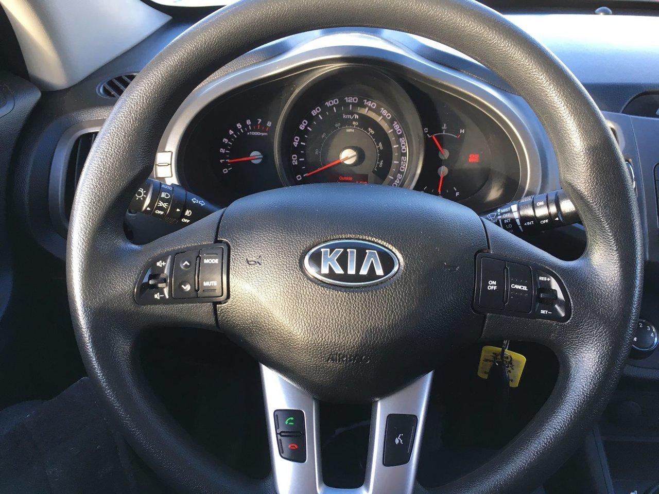 Kia Sportage LX MANUELLE BLUETOOTH Pneus d\'hiver inclus 2013Régulateur de vitesse, Essuie-glaces intermittents, Anti-démarreur, Freins ABS, Contrôle de stabilité, Coussin gonflable conducteur, Coussins gonflables latéraux, Lecteur CD, Lecteur MP3, Volant ajustable, Tapis protecteurs, Phares automatiques, Rétroviseur électrique, Direction assistée, Rétroviseurs chauffants, Coussins gonflables arrière pour la tête, Sièges tissu, Freins à disque, Sièges chauffants - Avant, Antipatinage, Phares antibrouillards, Verrous de sécurité pour enfants, Sièges baquets, Technologie Bluetooth intégrée, Aluminium, Climatisation