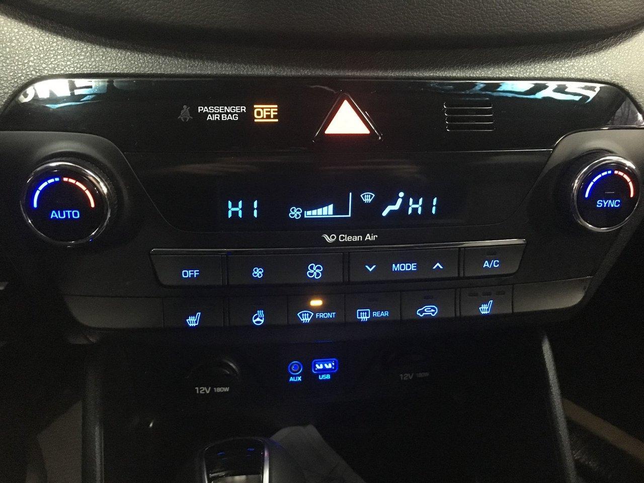Hyundai Tucson 1.6T SE AWD CUIR Pneus d\'hiver unclus 2017Régulateur de vitesse, Essuie-glaces intermittents, Anti-démarreur, Freins ABS, Contrôle de stabilité, Coussin gonflable conducteur, Coussins gonflables latéraux, Lecteur MP3, Intérieur en cuir, Volant ajustable, Moonroof, Tapis protecteurs, Caméra de recul, Volant gainé de cuir, Phares automatiques, Rétroviseur électrique, Sièges arrières chauffants, Direction assistée, Rétroviseurs chauffants, Siège à réglage électrique, Coussins gonflables arrière pour la tête, Siège conducteur - soutien lombaire, Freins à disque, Sièges chauffants - Avant, Antipatinage, Phares antibrouillards, Verrous de sécurité pour enfants, Sièges baquets, Technologie Bluetooth intégrée, Surveillance de l'angle mort, Aluminium, Climatisation, Volant chauffant