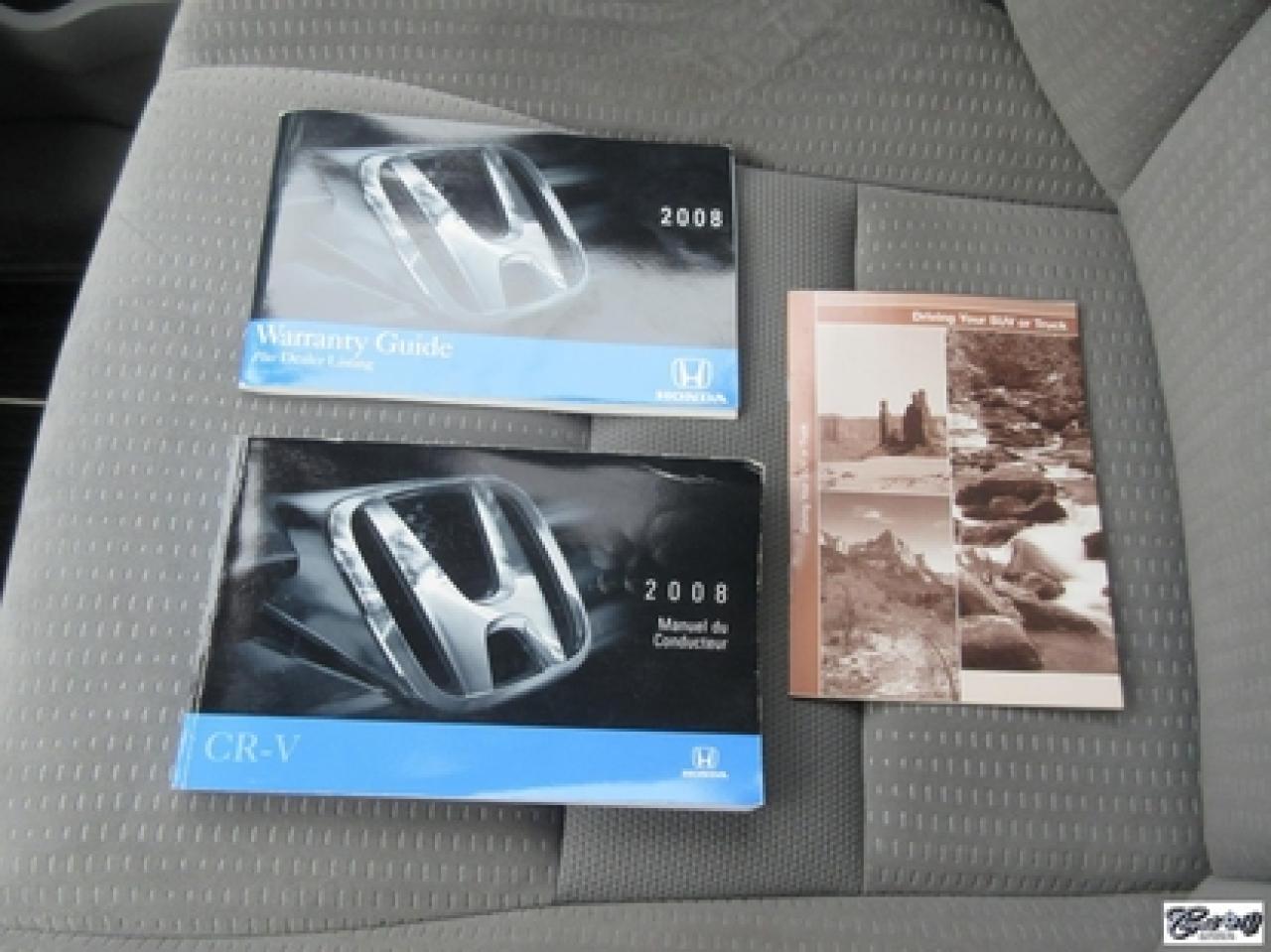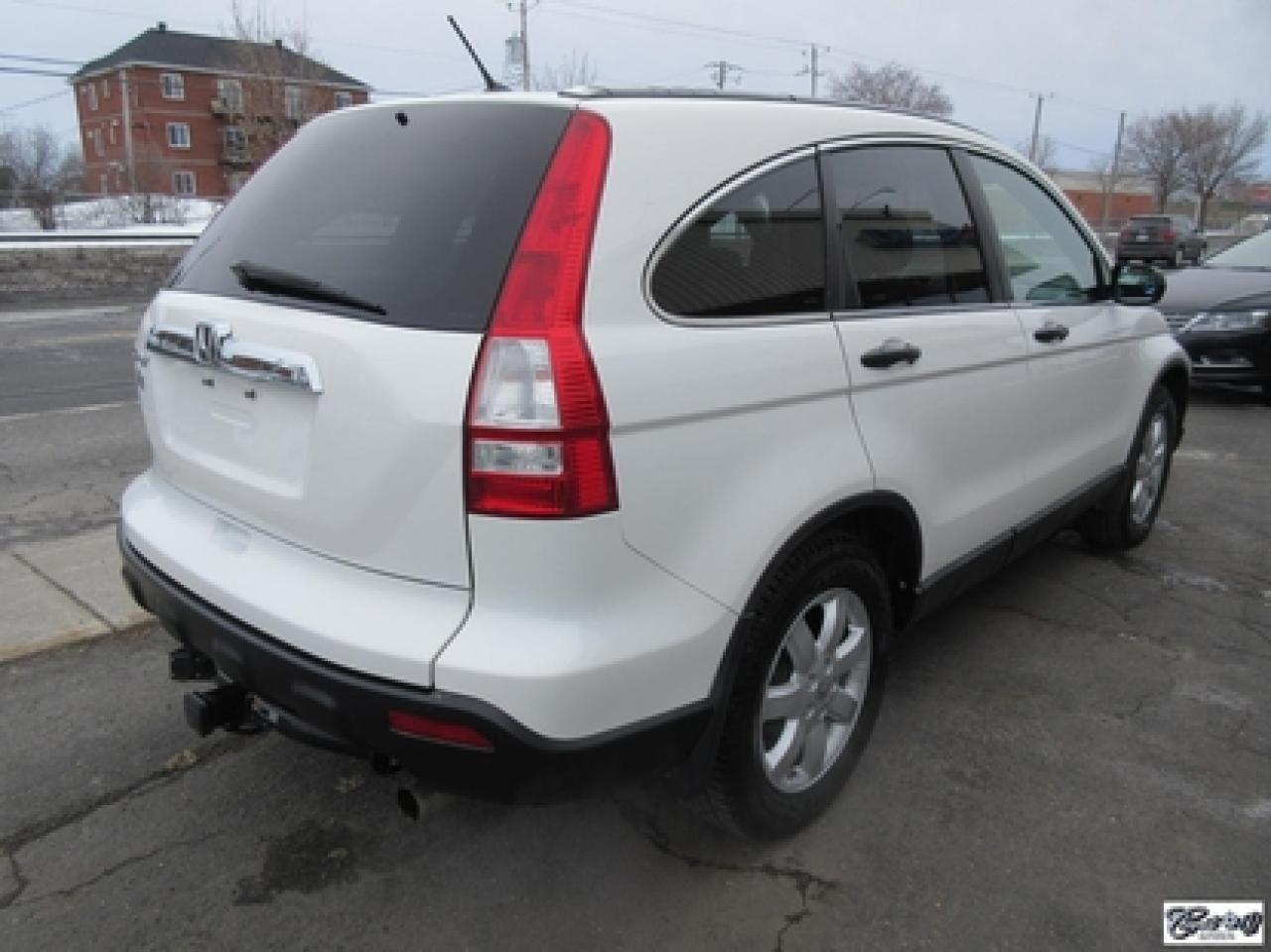 Honda Cr-V Ex Ti 2008\n\nRégulateur de vitesse, Toit ouvrant, Essuie-glaces intermittents, Essuie-glace arrière, Anti-démarreur, Freins ABS, Contrôle de stabilité, Coussin gonflable conducteur, Lecteur CD, Chargeur de CD, Lecteur MP3, Miroirs chauffants, Portes électriques, Tachymètre, Vitres électriques, Air climatisé, Commandes audio au volant, Sièges arrières rabattables, Volant ajustable, Tapis protecteurs, Vitres teintées, Attelage remorque, Ordinateur de bord, Radio AM/FM, Direction assistée, Télédéverrouillage, Système d'alarme, Rétroviseurs électriques, Jantes en alliage, Antipatinage, Coussins gonflables, Verrous de sécurité pour enfants, Système de surveillance de la pression des pneus, Dégivreur de lunette arrière, Miroirs ajustables de l'intérieur, Sièges baquets\n\nIMPECCABLE, très bien entretenu, bas kilométrage, petit VUS 4X4 fiable et économique, toit ouvrant, 4 pneus comme neufs YOKOHAMA GEOLANDER G015 4 saisons avec logo valides pour l'hiver, gr. électrique, A/C, changeur 6 CD's au tableau de bord, régulateur de vitesse, attache-remorque. Très beau VUS, faîtes vite!!! Carproof disponible, aucune réclamation...