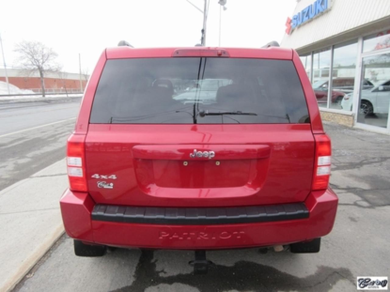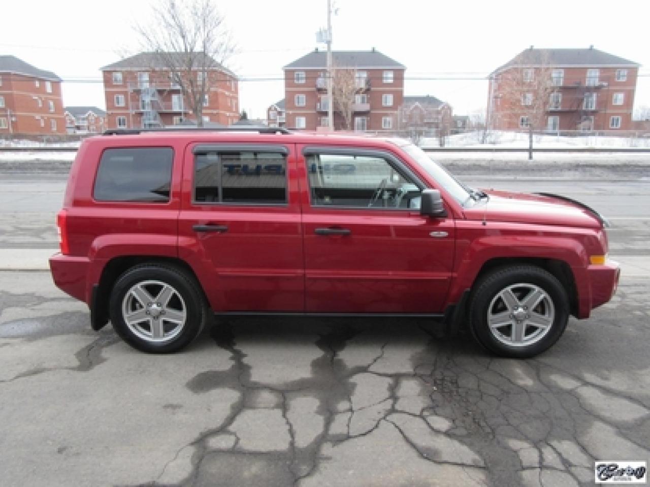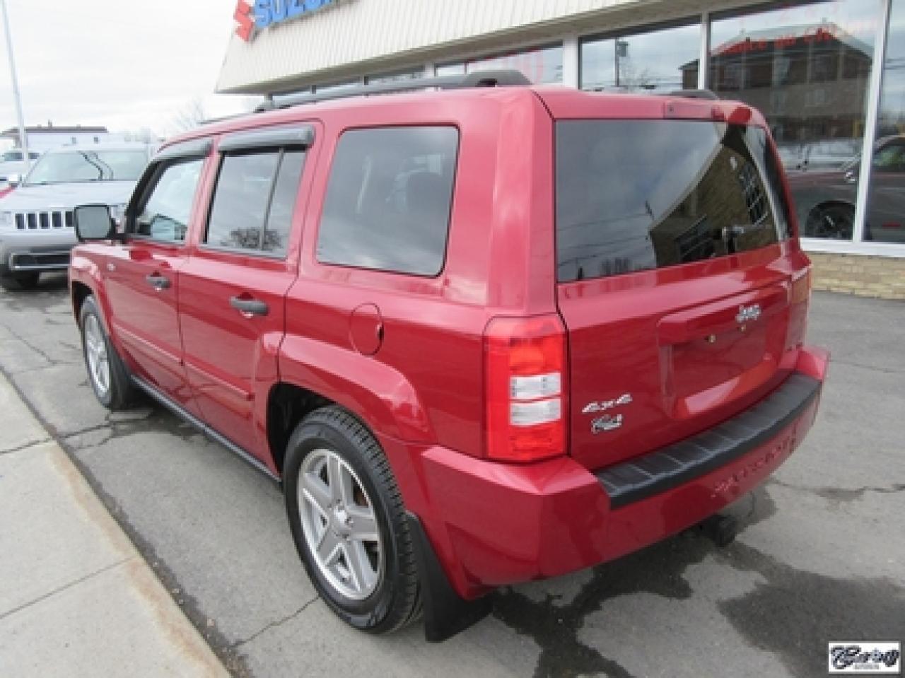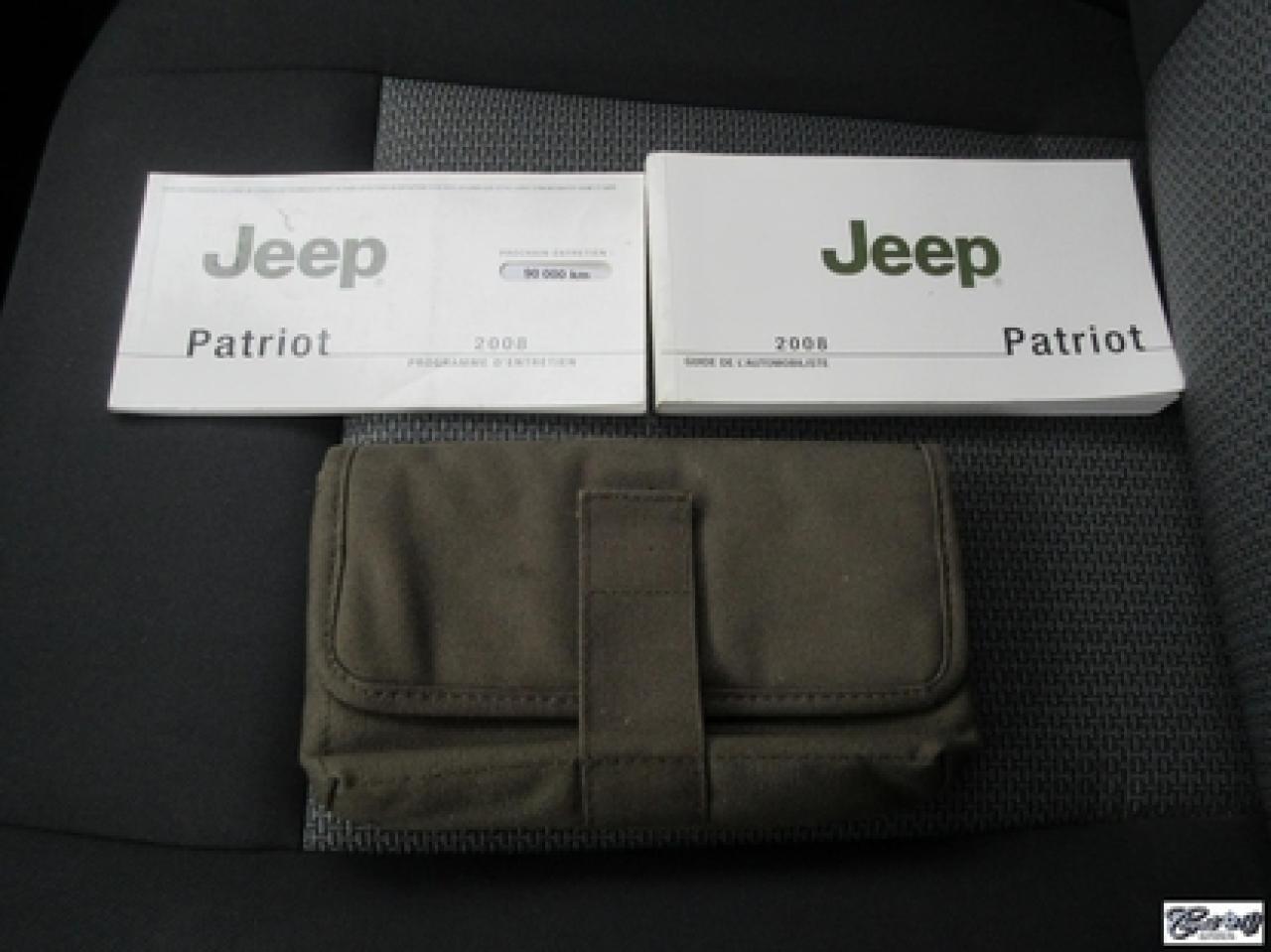 Jeep Patriot 4rm North 2008\n\nRégulateur de vitesse, Essuie-glaces intermittents, Essuie-glace arrière, Anti-démarreur, Freins ABS, Contrôle de stabilité, Coussin gonflable conducteur, Lecteur CD, Chauffe-moteur, Miroirs chauffants, Portes électriques, Tachymètre, Vitres électriques, Air climatisé, Commandes audio au volant, Sièges arrières rabattables, Sièges chauffants, Volant ajustable, Moulures protectrices latérales, Tapis protecteurs, Vitres teintées, Ordinateur de bord, Radio AM/FM, Protège-capot, Direction assistée, Télédéverrouillage, Rétroviseurs électriques, Jantes en alliage, Antipatinage, Coussins gonflables, Support à bagages, Système de surveillance de la pression des pneus, Dégivreur de lunette arrière, Miroirs ajustables de l'intérieur, Sièges baquets\n\nIMPECCABLE, entretenu minutieusement, 1 seule proprio (67 ans), 4X4, sièges chauffants, gr. électrique, A/C, régulateur de vitesse, déflecteurs de vitres et de capot, pneus comme neufs, bas kilométrage, petit VUS économique, faut voir!!! Carproof disponible, aucun accident...