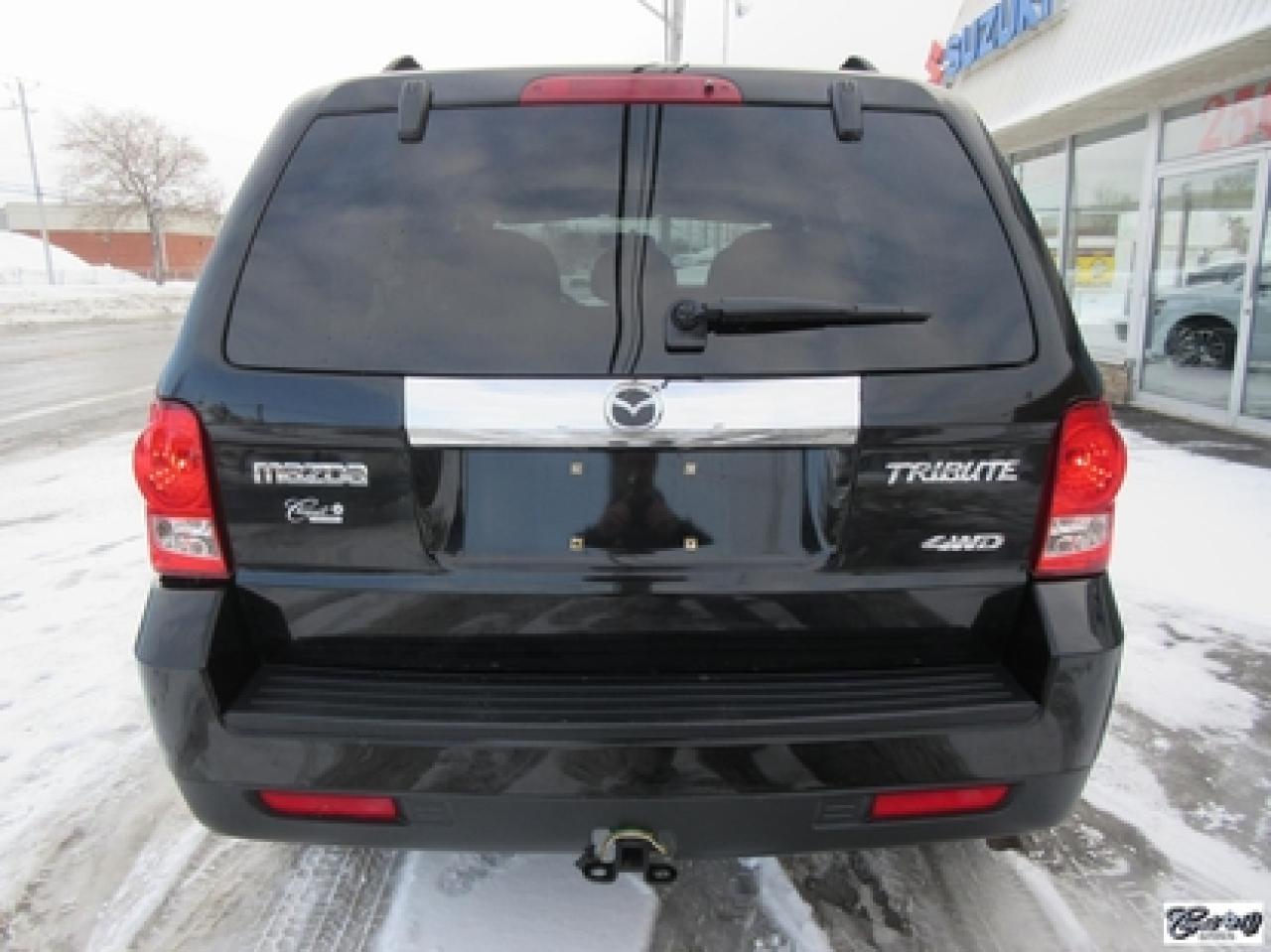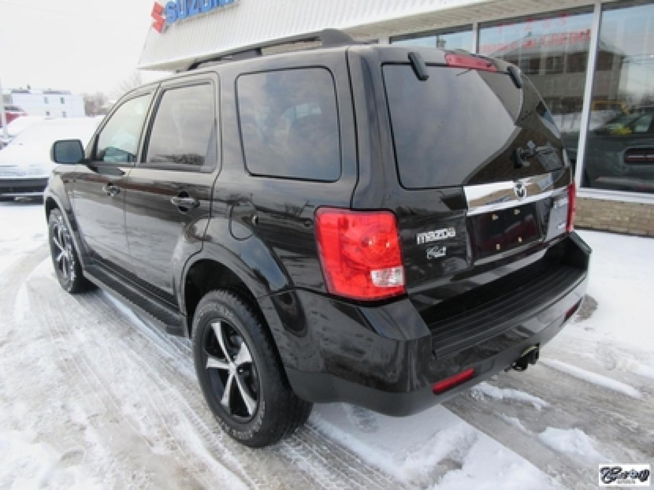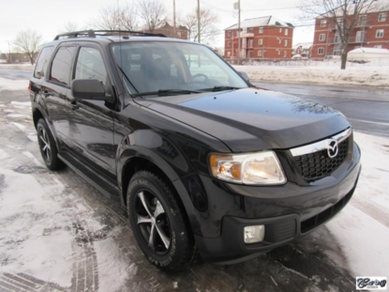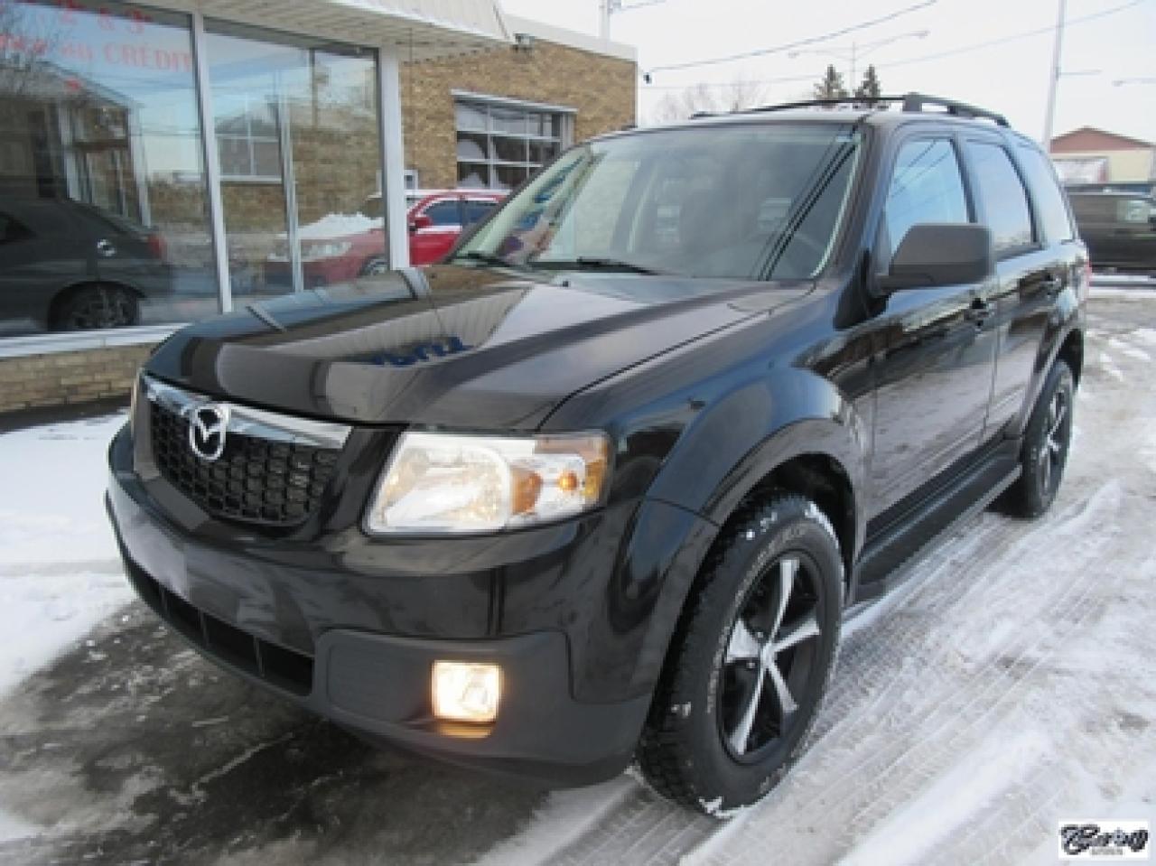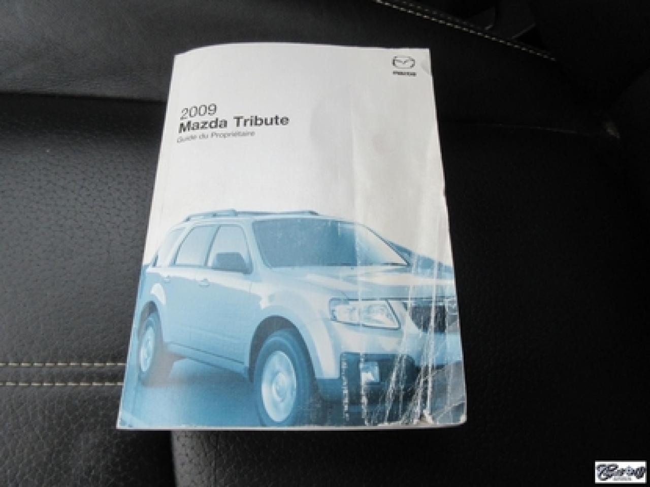 Mazda Tribute Gt V6 Awd *8 Pneus* 2009\n\nRégulateur de vitesse, Toit ouvrant, Essuie-glaces intermittents, Essuie-glace arrière, Anti-démarreur, Freins ABS, Contrôle de stabilité, Coussin gonflable conducteur, Lecteur CD, Miroirs chauffants, Portes électriques, Sièges électriques, Tachymètre, Vitres électriques, Air climatisé, Commandes audio au volant, Sièges arrières rabattables, Sièges chauffants, Volant ajustable, Marchepieds, Tapis protecteurs, Vitres teintées, Attelage remorque, Ordinateur de bord, Radio AM/FM, Direction assistée, Télédéverrouillage, Rétroviseurs électriques, Jantes en alliage, Antipatinage, Phares antibrouillards, Coussins gonflables, Support à bagages, Verrous de sécurité pour enfants, Système de surveillance de la pression des pneus, Dégivreur de lunette arrière, Miroirs ajustables de l'intérieur, Sièges baquets\n\nPetit VUS de très bonne réputation, cuir, toit ouvrant, sièges chauffants, V6 3.0L 4WD, gr. électrique, A/C, régulateur de vitesse, attache-remorque, marchepieds et +++. Très beau look, AUBAINE AUBAINE AUBAINE!!! Carproof disponible, aucun accident...