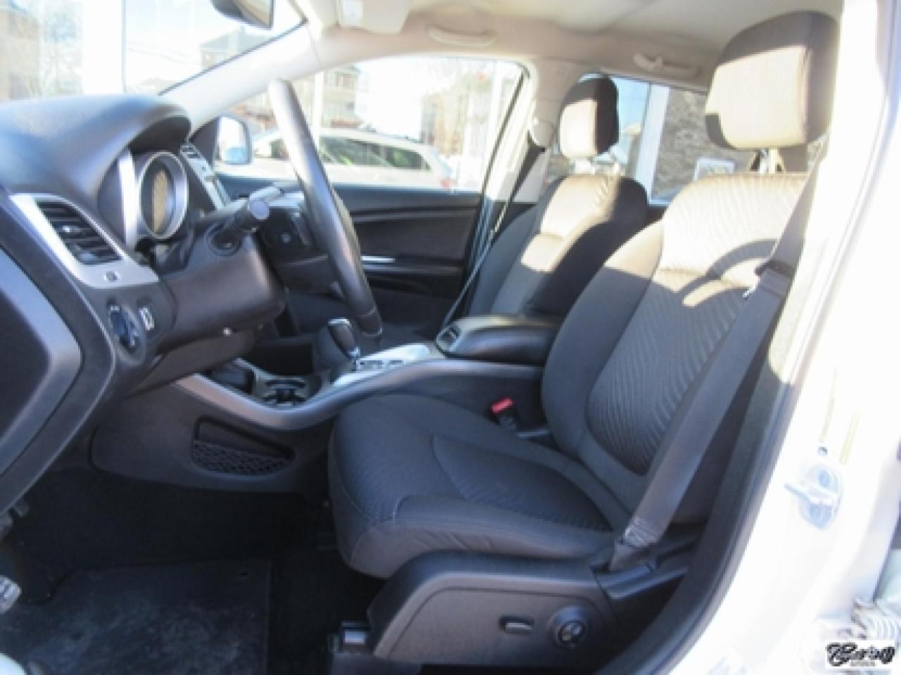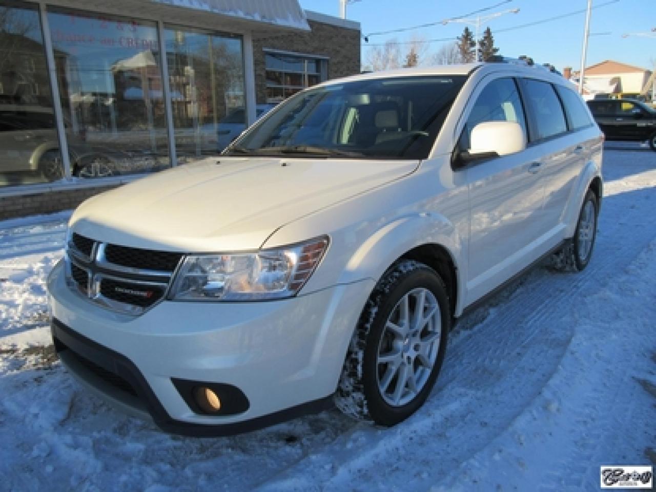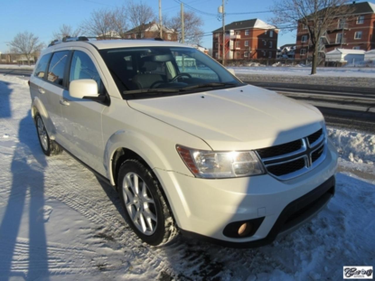 Dodge Journey Limited 2014\n\nRégulateur de vitesse, Essuie-glaces intermittents, Essuie-glace arrière, Anti-démarreur, Freins ABS, Contrôle de stabilité, Coussin gonflable conducteur, Démarreur à distance, Lecteur CD, Lecteur MP3, Chauffe-moteur, Miroirs chauffants, Portes électriques, Sièges électriques, Tachymètre, Vitres électriques, Air climatisé, Climatisation deux zones, Commandes audio au volant, Sièges arrières rabattables, Sièges chauffants, Volant ajustable, Tapis protecteurs, Vitres teintées, Ordinateur de bord, Radio AM/FM, Direction assistée, Télédéverrouillage, Système d'alarme, Rétroviseurs électriques, Jantes en alliage, Antipatinage, Phares antibrouillards, Coussins gonflables, Support à bagages, Verrous de sécurité pour enfants, Système de surveillance de la pression des pneus, Dégivreur de lunette arrière, Miroirs ajustables de l'intérieur, Climatiseur automatique\n\nCaméra de recul, dem. à distance, écran tactile 8.4", volant et sièges chauffants, "bluetooth", vitres teintées, gr. électrique, A/C, siège conducteur électrique, superbe couleur blanc perle, entrée sans clé et +++. Véhicule très polyvalent, AUBAINE AUBAINE AUBAINE!!! Carproof disponible...