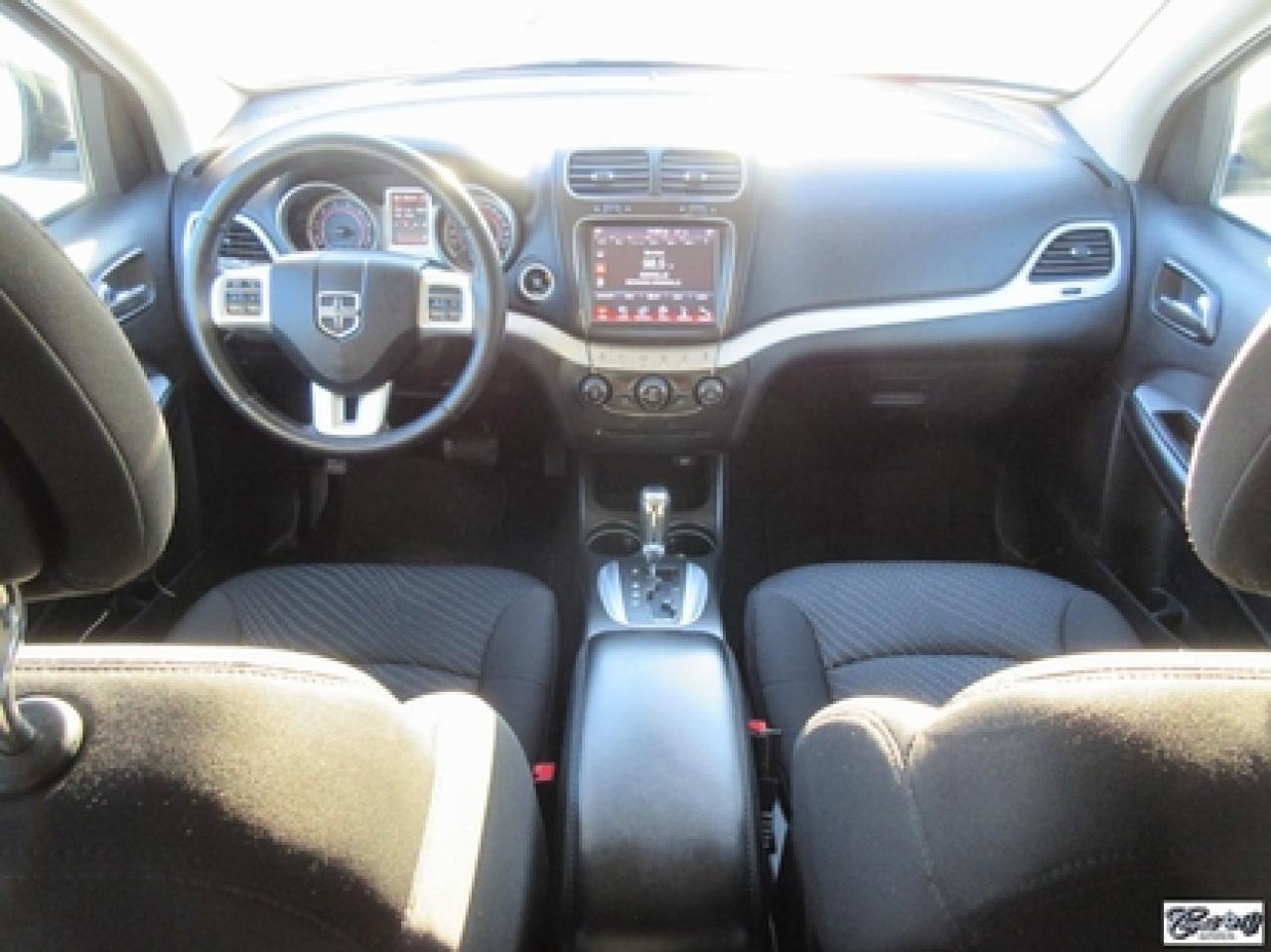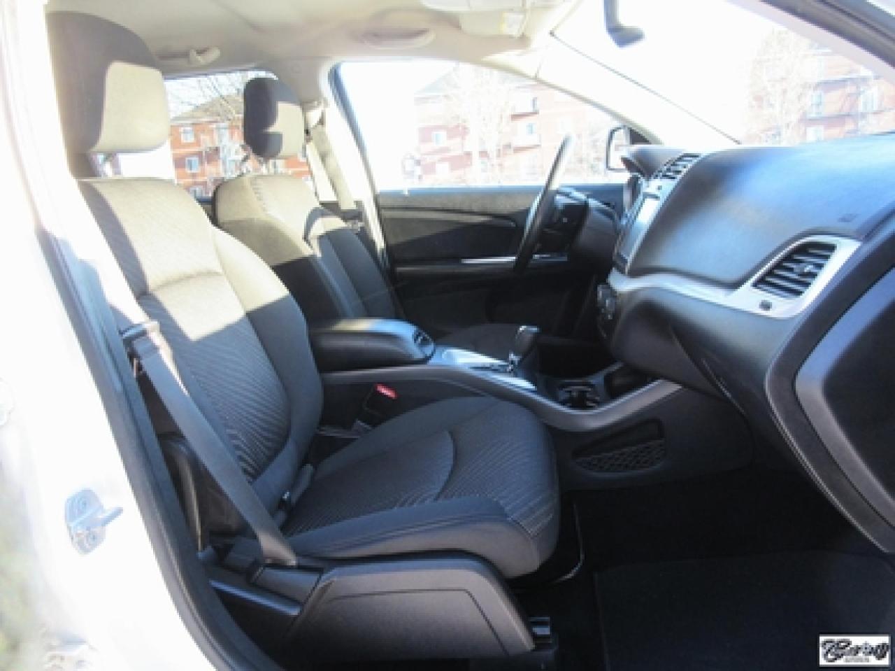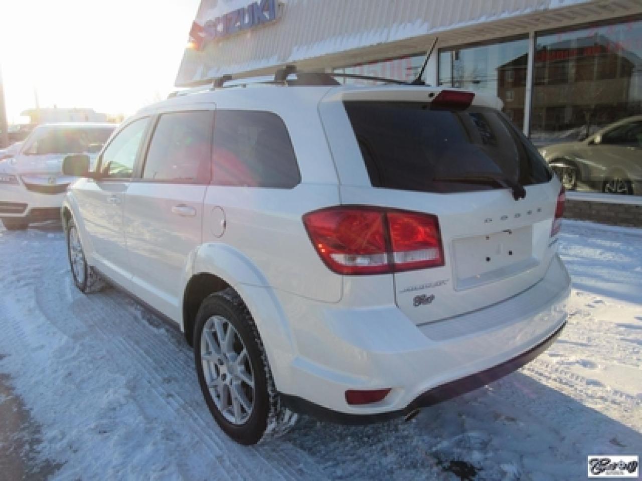 Dodge Journey Limited 2014\n\nRégulateur de vitesse, Essuie-glaces intermittents, Essuie-glace arrière, Anti-démarreur, Freins ABS, Contrôle de stabilité, Coussin gonflable conducteur, Démarreur à distance, Lecteur CD, Lecteur MP3, Chauffe-moteur, Miroirs chauffants, Portes électriques, Sièges électriques, Tachymètre, Vitres électriques, Air climatisé, Climatisation deux zones, Commandes audio au volant, Sièges arrières rabattables, Sièges chauffants, Volant ajustable, Tapis protecteurs, Vitres teintées, Ordinateur de bord, Radio AM/FM, Direction assistée, Télédéverrouillage, Système d'alarme, Rétroviseurs électriques, Jantes en alliage, Antipatinage, Phares antibrouillards, Coussins gonflables, Support à bagages, Verrous de sécurité pour enfants, Système de surveillance de la pression des pneus, Dégivreur de lunette arrière, Miroirs ajustables de l'intérieur, Climatiseur automatique\n\nCaméra de recul, dem. à distance, écran tactile 8.4", volant et sièges chauffants, "bluetooth", vitres teintées, gr. électrique, A/C, siège conducteur électrique, superbe couleur blanc perle, entrée sans clé et +++. Véhicule très polyvalent, AUBAINE AUBAINE AUBAINE!!! Carproof disponible...