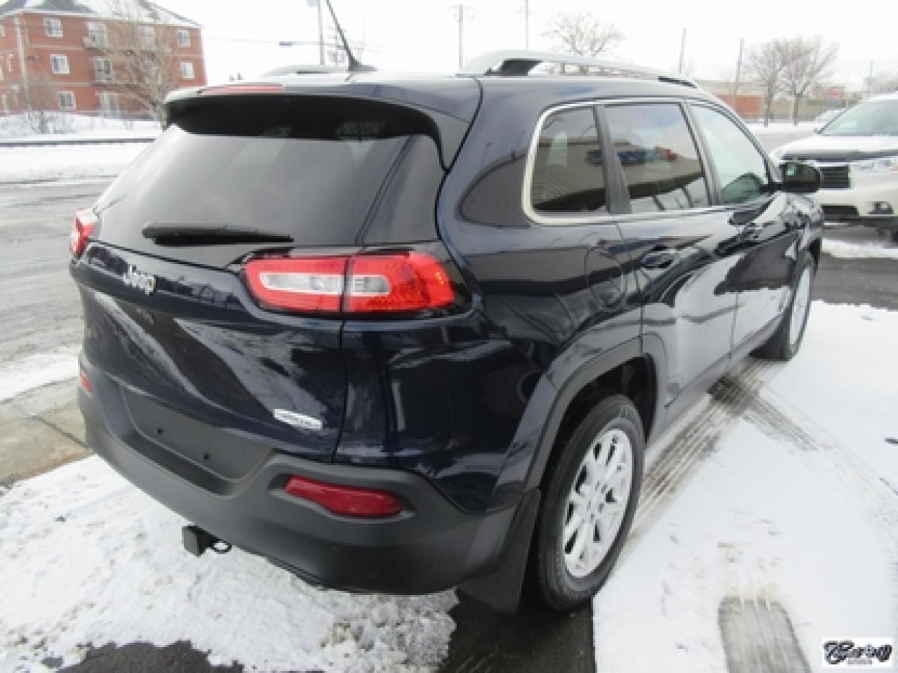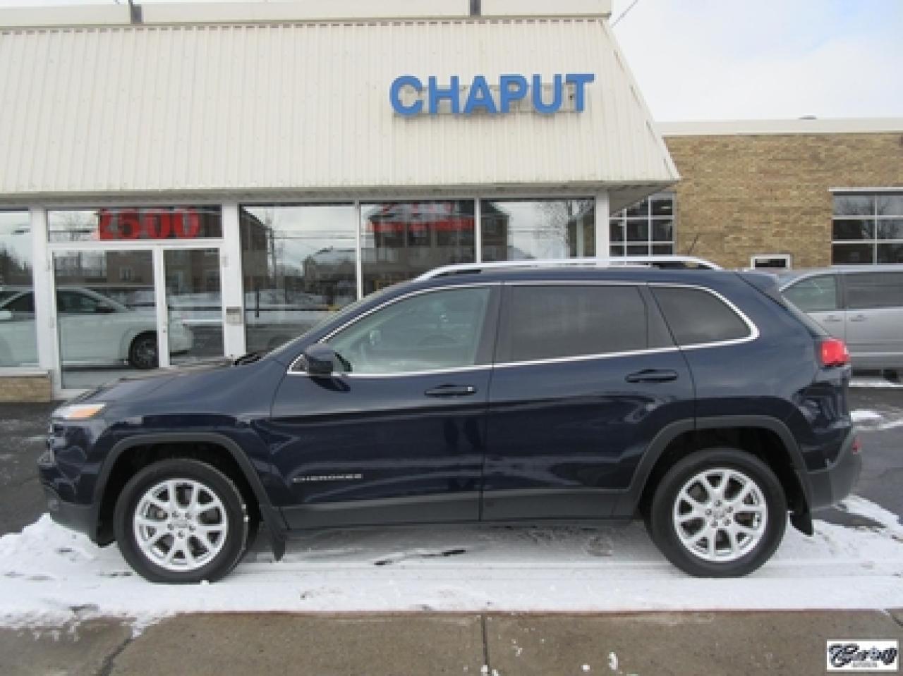 Jeep Cherokee North 4x2 2014\n\nRégulateur de vitesse, Essuie-glaces intermittents, Essuie-glace arrière, Anti-démarreur, Freins ABS, Contrôle de stabilité, Coussin gonflable conducteur, Lecteur MP3, Chauffe-moteur, Portes électriques, Tachymètre, Vitres électriques, Air climatisé, Commandes audio au volant, Sièges arrières rabattables, Volant ajustable, Aileron, Tapis protecteurs, Vitres teintées, Attelage remorque, Radio satellite, Ordinateur de bord, Caméra de recul, Radio AM/FM, Direction assistée, Télédéverrouillage, Rétroviseurs électriques, Jantes en alliage, Antipatinage, Phares antibrouillards, Coussins gonflables, Support à bagages, Verrous de sécurité pour enfants, Système de surveillance de la pression des pneus, Dégivreur de lunette arrière, Miroirs ajustables de l'intérieur, Sièges baquets, Technologie Bluetooth intégrée\n\nBALANCE DE GARANTIE PROLONGÉE JEEP PLAN OR GLOBALE JUSQU'AU 16 MAI 2019 OU 100000 KM TRANSFÉRABLE SANS FRAIS. Attache-remorque, capacité de remorquage de 4500 lbs, caméra de recul, écran tactile de 8.4 pouces, "bluetooth", gr. électrique, A/C, V6 3.2L PENTASTAR, traité antirouille. Superbe VUS, un seul proprio!!! AUBAINE AUBAINE AUBAINE... Carproof disponible, aucun accident.