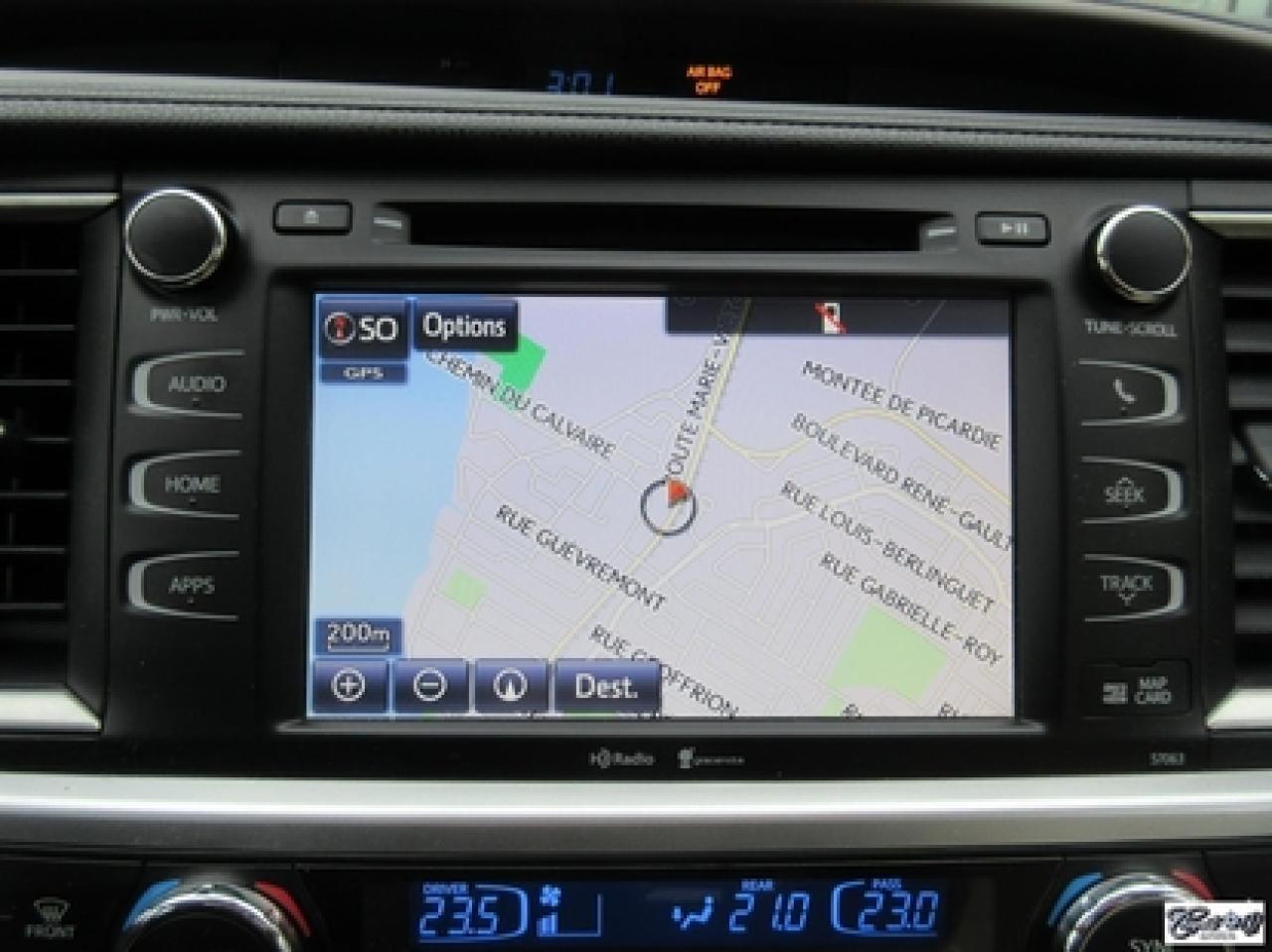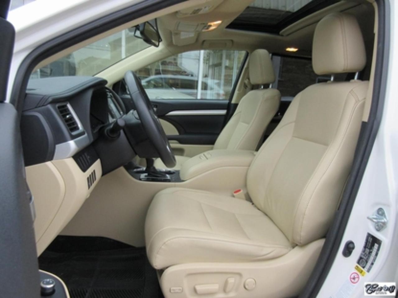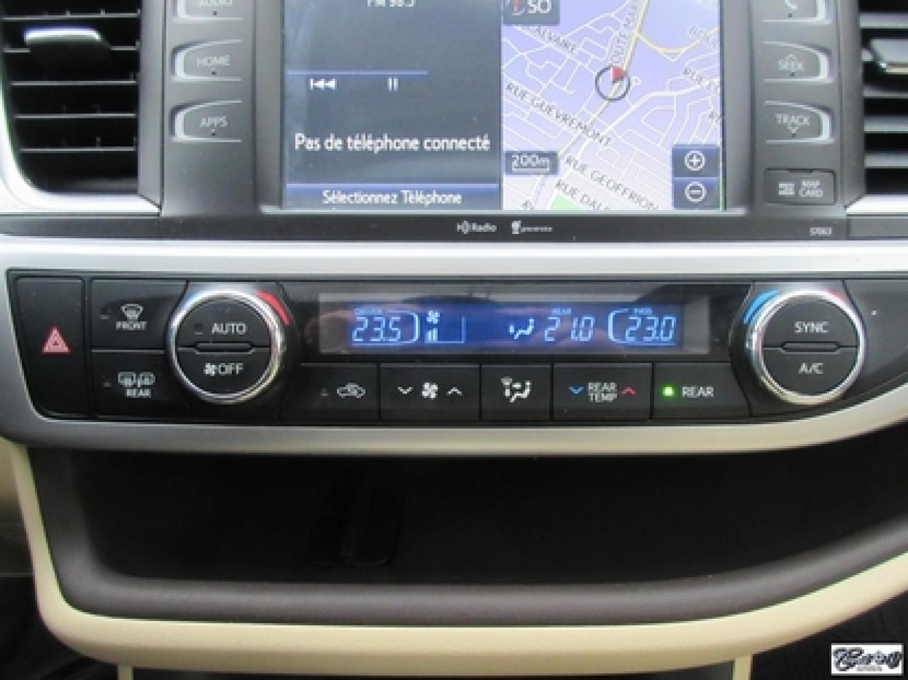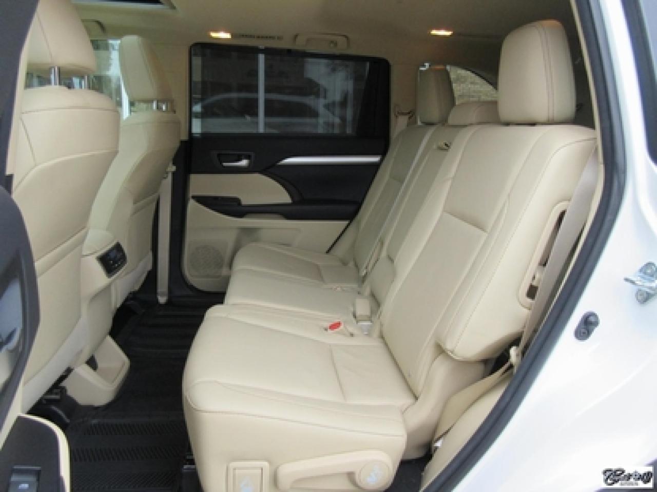Toyota Highlander Xle V6 Awd 2015\n\nRégulateur de vitesse, Toit ouvrant, Essuie-glaces intermittents, Essuie-glace arrière, Anti-démarreur, Freins ABS, Contrôle de stabilité, Coussin gonflable conducteur, Lecteur CD, Lecteur MP3, Coffre - Ouverture à distance, Miroirs chauffants, Portes électriques, Sièges électriques, Tachymètre, Vitres électriques, Air climatisé, Intérieur en cuir, Banquette de troisième rangée, Chauffage arrière, Climatisation deux zones, Commandes audio au volant, Sièges arrières rabattables, Sièges chauffants, Volant ajustable, Aileron, Tapis protecteurs, Vitres teintées, Attelage remorque, Radio satellite, Ordinateur de bord, Caméra de recul, Radio AM/FM, Protège-capot, Direction assistée, Télédéverrouillage, Système d'alarme, Rétroviseurs électriques, Jantes en alliage, Antipatinage, Phares antibrouillards, Coussins gonflables, Support à bagages, Verrous de sécurité pour enfants, Système de surveillance de la pression des pneus, Dégivreur de lunette arrière, Miroirs ajustables de l'intérieur, Sièges baquets, Technologie Bluetooth intégrée, Port USB, Climatiseur automatique, Système HomeLink\n\nWOW!!! Blanc perle intérieur en cuir tan, 4 PNEUS HIVER SUR RIMS INCLUS, toit ouvrant, navigation, caméra de recul, climatisation et chauffage arrière, 8 PASSAGERS, gr. électrique, sièges chauffants, entrée sans clé, "bluetooth", hayon électrique, système de repérage TAG, attache-remorque et +++. Capacité de remorquage de 5000 lbs, un très beau VUS luxueux, spacieux et fiable!!! Carproof disponible...