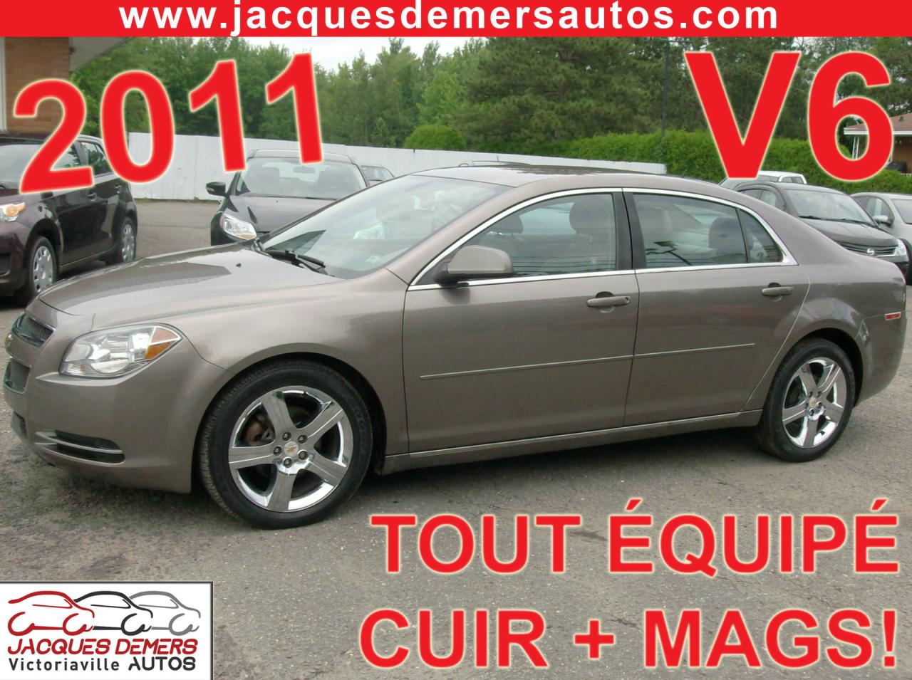 Chevrolet Malibu LT édition platine 2011, MOTEUR V6 DE 3.6 LITRES!! ** TRÈS RARE! ** Seulement 81 000! Traitement antirouille effectuée sur le véhicule! TOUT ÉQUIPÉ! Sièges en cuir, MAGS CHROME, démarreur à distance, bluetooth (téléphone mains libres), sièges chauffants, siège électrique, air climatisé, cruise control, vitres électriques, serrures électriques, télédévérouillage, rétroviseurs électriques, volant réglable, radio satellite, on star, prise auxiliaire audio, prise USB, volant en cuir et beaucoup plus!! ******************************************************************************** FINANCEMENT directement sur place! TAUX D'INTÉRÊTS TRÈS AVANTAGEUX! ----- CHANGEMENT D'HUILE ET MISE À L'ORDRE EFFECTUÉS SUR TOUS NOS VÉHICULES! ** Aucun frais cachés! ** OUVERT DEPUIS PLUS DE 35 ANS! ** ASSISTANCE ROUTIÈRE INLUSE SUR TOUS NOS VÉHICULES! ** SERVICE TRANSPARENT!! PAS DE FAUSSES PROMESSES!! Ici, vous faites affaire directement avec les propriétaires avant la vente et après la vente! ******************************************************************************** Nous sommes situés au Centre-du-Québec à 1h de Québec, 1h de Sherbrooke, 30 minutes de Trois-Rivières et 1h30 de Montréal ----- NOS VÉHICULES SONT INSPECTÉS, MIS EN ORDRE ET GARANTIS! ----- Centre de l'automobile complet (Mécanique, carrosserie, pare-brise) en mesure d'offrir à tous ses clients un service personnalisé et de grande qualité! ******************************************************************************** SERVICE APRÈS-VENTE HORS PAIR! ----- Véhicules récents avec bas kilométrage aux meilleurs prix! ----- EXTENSION DE GARANTIE DISPONIBLE! ----- La place digne de confiance dans la région des Bois-Francs depuis 1978! ** ENTREPRISE FAMILIALE ** ----- 1581 NOTRE-DAME OUEST, VICTORIAVILLE ----- Appelez-nous pour prendre rendez-vous! ----- Consultez notre inventaire en ligne sur le www.jacquesdemersautos.com ********************************************************************************