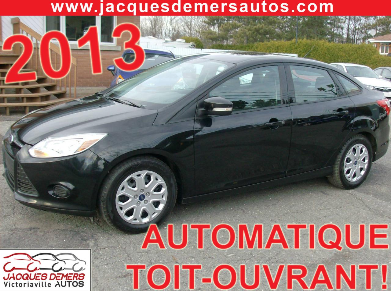 Ford Focus 2013, AUTOMATIQUE + TOUT ÉQUIPÉ! En très bonne condition! Véhicule inspecté et garanti! ** AUCUNE DÉCLARATION SUR LE CARPROOF! ** Air climatisé, cruise control, TOIT-OUVRANT, bluetooth (téléphone mains libres), sièges chauffants, vitres électriques, serrures électriques, rétroviseurs électriques, télédévérouillage, lecteur cd, prise auxiliaire audio, prise USB, volant télescopique, contrôle audio sur le volant et beaucoup plus!! VÉHICULE TRÈS FIABLE ET ÉCONOMIQUE! ******************************************************************************** FINANCEMENT directement sur place! TAUX D'INTÉRÊTS TRÈS AVANTAGEUX! ----- CHANGEMENT D'HUILE ET MISE À L'ORDRE EFFECTUÉS SUR TOUS NOS VÉHICULES! ** Aucun frais cachés! ** OUVERT DEPUIS PLUS DE 35 ANS! ** ASSISTANCE ROUTIÈRE INLUSE SUR TOUS NOS VÉHICULES! ** SERVICE TRANSPARENT!! PAS DE FAUSSES PROMESSES!! Ici, vous faites affaire directement avec les propriétaires avant la vente et après la vente! ******************************************************************************** Nous sommes situés au Centre-du-Québec à 1h de Québec, 1h de Sherbrooke, 30 minutes de Trois-Rivières et 1h30 de Montréal ----- NOS VÉHICULES SONT INSPECTÉS, MIS EN ORDRE ET GARANTIS! ----- Centre de l'automobile complet (Mécanique, carrosserie, pare-brise) en mesure d'offrir à tous ses clients un service personnalisé et de grande qualité! ******************************************************************************** SERVICE APRÈS-VENTE HORS PAIR! ----- Véhicules récents avec bas kilométrage aux meilleurs prix! ----- EXTENSION DE GARANTIE DISPONIBLE! ----- La place digne de confiance dans la région des Bois-Francs depuis 1978! ** ENTREPRISE FAMILIALE ** ----- 1581 NOTRE-DAME OUEST, VICTORIAVILLE ----- Appelez-nous pour prendre rendez-vous! ----- Consultez notre inventaire en ligne sur le www.jacquesdemersautos.com ********************************************************************************