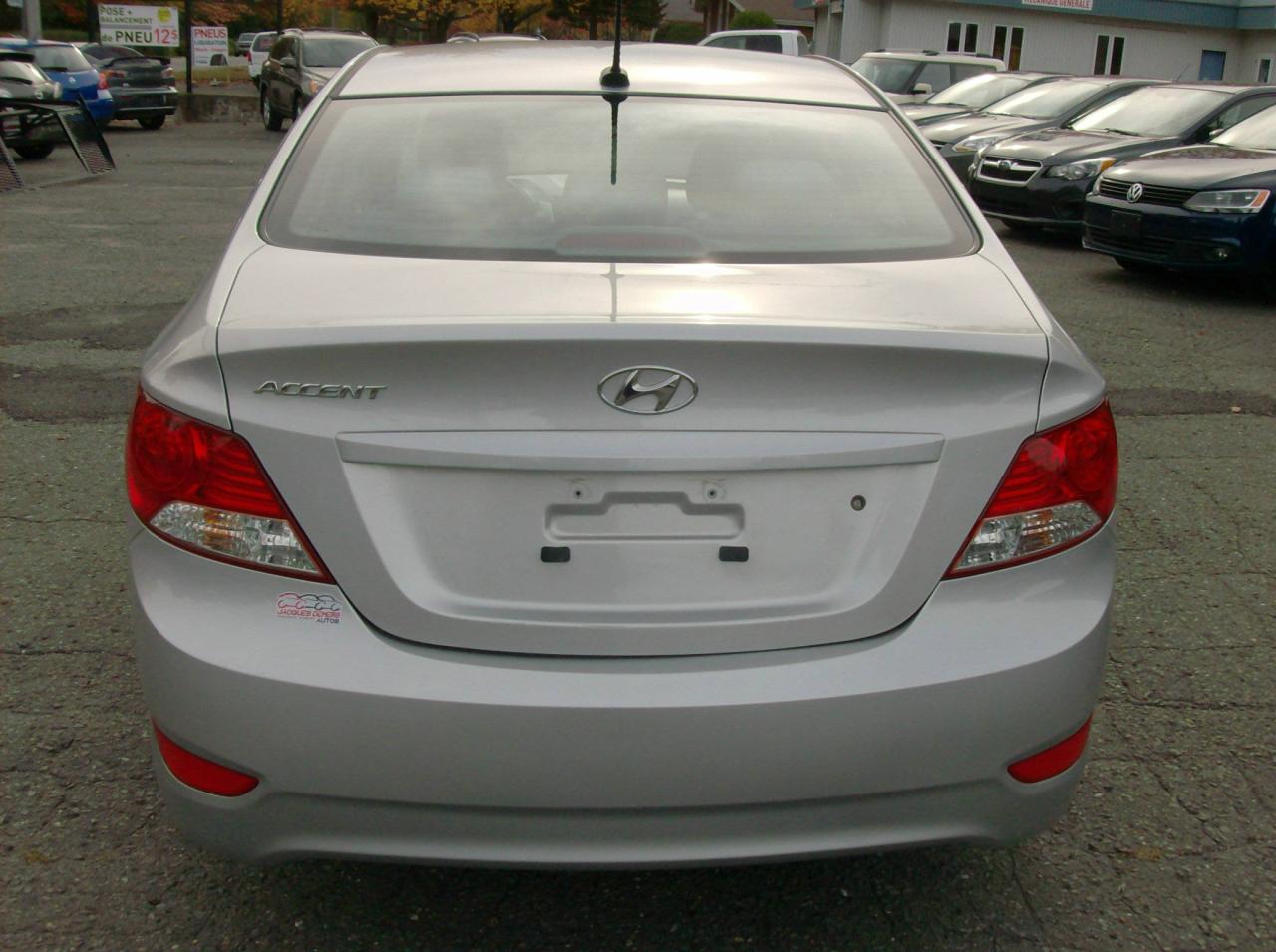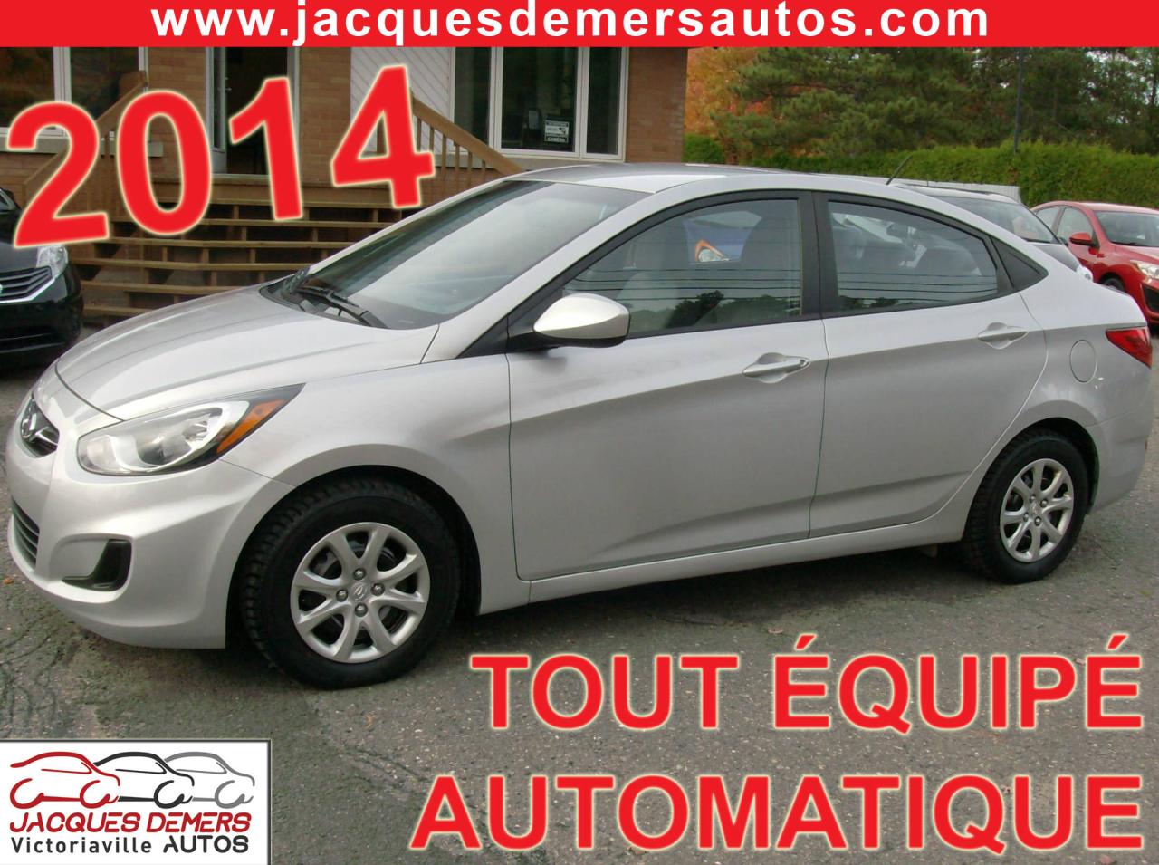 Hyundai Accent 2014, AUTOMATIQUE + TOUT ÉQUIPÉ! Véhicule inspecté et garanti! TRÈS PROPRE! Mécanique en excellente condition! Air climatisé, sièges chauffants, bluetooth (téléphone mains libres), vitres électriques, serrures électriques, rétroviseurs électriques, lecteur cd, prise auxiliaire, prise USB, volant réglable, contrôle audio sur le volant et beaucoup plus!! ******************************************************************************** FINANCEMENT directement sur place! TAUX D'INTÉRÊTS TRÈS AVANTAGEUX! ----- CHANGEMENT D'HUILE ET MISE À L'ORDRE EFFECTUÉS SUR TOUS NOS VÉHICULES! ** Aucun frais cachés! ** OUVERT DEPUIS PLUS DE 35 ANS! ** ASSISTANCE ROUTIÈRE INLUSE SUR TOUS NOS VÉHICULES! ** SERVICE TRANSPARENT!! PAS DE FAUSSES PROMESSES!! Ici, vous faites affaire directement avec les propriétaires avant la vente et après la vente! ******************************************************************************** Nous sommes situés au Centre-du-Québec à 1h de Québec, 1h de Sherbrooke, 30 minutes de Trois-Rivières et 1h30 de Montréal ----- NOS VÉHICULES SONT INSPECTÉS, MIS EN ORDRE ET GARANTIS! ----- Centre de l'automobile complet (Mécanique, carrosserie, pare-brise) en mesure d'offrir à tous ses clients un service personnalisé et de grande qualité! ******************************************************************************** SERVICE APRÈS-VENTE HORS PAIR! ----- Véhicules récents avec bas kilométrage aux meilleurs prix! ----- EXTENSION DE GARANTIE DISPONIBLE! ----- La place digne de confiance dans la région des Bois-Francs depuis 1978! ** ENTREPRISE FAMILIALE ** ----- 1581 NOTRE-DAME OUEST, VICTORIAVILLE ----- Appelez-nous pour prendre rendez-vous! ----- Consultez notre inventaire en ligne sur le www.jacquesdemersautos.com ********************************************************************************
