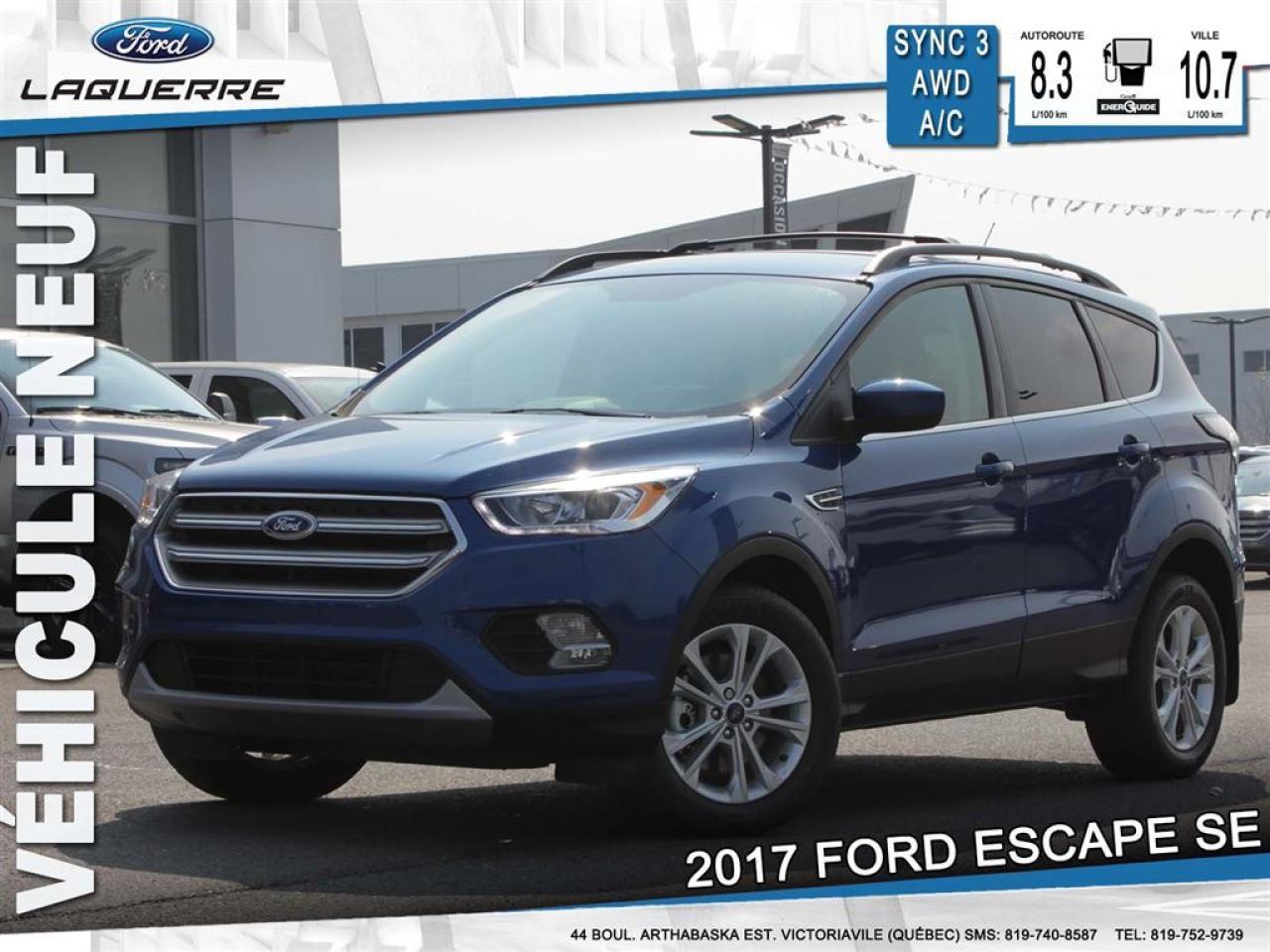 17592 LE FORD ESCAPE 2017 ÉLÈVE SON STYLE AUDACIEUX D'UN CRAN AVEC SA NOUVELLE CONCEPTION GRAPHIQUE EXTÉRIEURE ET VA DE L'AVANT AVEC DES AMÉLIORATIONS DES COMMODITÉS DU CONDUCTEUR ET DU PASSAGER. UNE CALANDRE PLUS AUDACIEUSE, UN CAPOT SCULPTÉ ET UNE ALLURE SPORTIVE. PLUS DE 6,019.00$ DE RABAIS SUR UN VÉHICULE NEUF. SIMPLEMENT LE MOINS CHER AU QUÉBEC, PLUSIEURS EN INVENTAIRE. PRIX DE DÉTAIL DE 33,239.00$ INCLUANT TOUTES CES OPTIONS. GROUPE D'EQUIPEMENT 201A 1,550.00 ?ENSEMBLE COMMODITE SE ?CAPTEURS STATIONNEMENT ARRIERE ?BRANCARDS DE PAVILLON NOIRS ?SYNC 3 ?COUVRE-BAGAGES ?SIEGE COND REGLAGE ELEC 10 DI ?SYNC CONNECT TRANSPORT ET PREPARATION INCLUS, BASÉ SUR UN FINANCEMENT DE 96 MOIS, TAUX D'INTÉRÊT DE 4.99%, TAXES EN SUS, SOUS APPROBATION DU CRÉDIT. FRAIS DE CREDIT DE 5,819.07$ INCLUS! OBLIGATION TOTALE DE 33,040.80$! RABAIS 1,000.00$ VUS INCLUS.