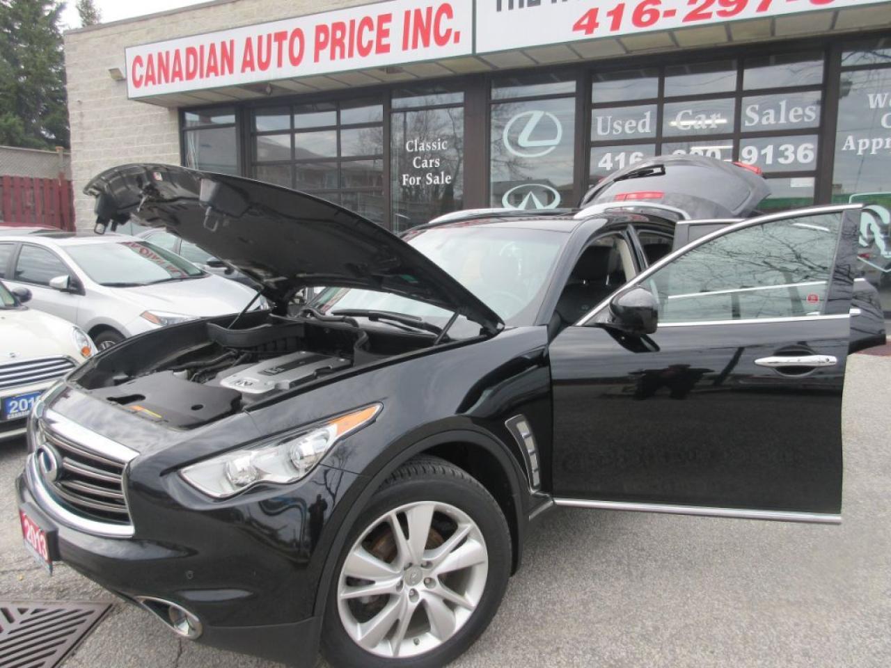 HOLIDAY SPECIALS NOW ON! LIMITED TIME OFFERS. COME IN NOW FOR OUR BEST DEALS! Welcomed To Canadian Auto Price: FX-37- LIMITED EDITION-TECH-PKG-NAVIGATION AND HD CAMERA, BLACK ON Black LEATHER, SUNROOF ,NAVIGATION .BACK UP CAMERA, Awd,COULD AND HEATED SEATS , FRONT AND REAR SENSORS, Blue=Tooth, Usb, Aux, Premium Stereo, CD Player,Pwr. Windows, Pwr Door Looks, Pwr Mirroes, Automatic Transmission, Canadian Car, One Owner From NISSAN Canada, And More... Financing and Leasing Available! Good and Bad Credits Welcome! FINANCING: FINANCING, AVAILABLE FOR ALL CREDITS..Bad Credit Good Credit....THE HOME OF 99.9% Approval CENTER........0 DOWN AND NO PAYMENT FOR 6 MONTHS...MONTHLY PAYMENT & TERMS, MAY VARY & ARE BASED. O.A.C..PLEASE CONTACT DEALER FOR MORE DETAILS. . . Advertised Unfit Vehicle is not certified and not e-tested. Certification and e-testing available for $499.00..!!! PLEASE SEE DEALER FOR MORE DETAILS. PLS VISIT OUR WEBSITE @ WWW.CANADIANAUTOPRICE.CA///////// FOR MORE CARS. Taxes and licensing are not included in the price. Trade-ins are welcome. Variety of Extended Warranty Plans are available up to 5 years. We will ship to any Canadian Province. The cost of the shipping is not included in the price. BUSINESS HOURS: Mon-Fri: 10:00am - 08:00pm. Sat: 10:00am - 07:00pm. Sun: 10:00am - 05:00pm. LOCATION: 820 Markham Rd. (Markham Rd. & Painted Post) Scarborough, ON M1H 2Y2 Tel:416-297-9797 / 1-888-840-5079 Thank you for your interest in our inventory!
