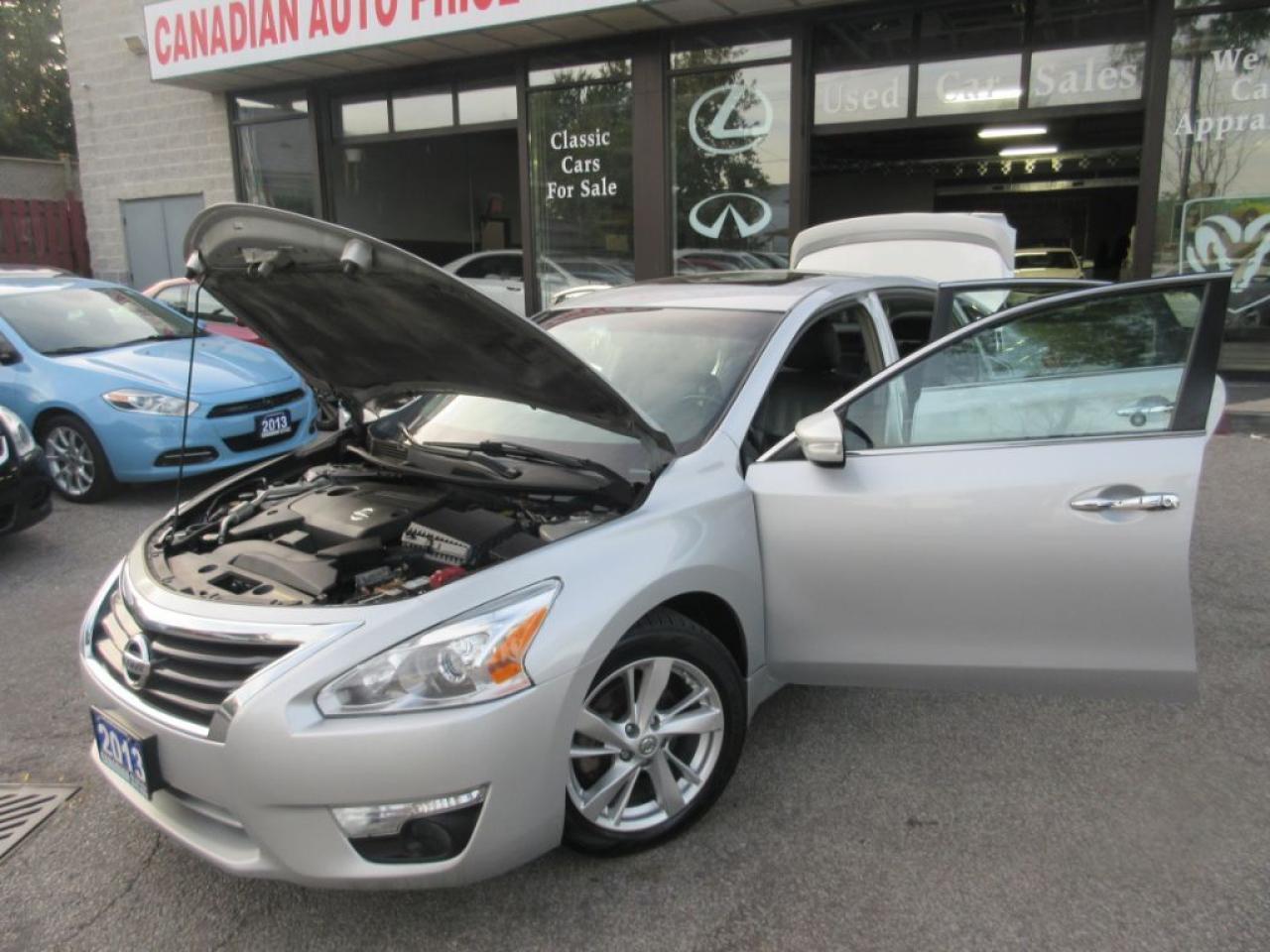 Welcomed To Canadian Auto Price: AUTOMATIC, SILVER OVER BLACK LEATHER INT, ONE OWNER OFF NISSAN CANADA LEASE, 2.5-SL,PUSH START BUTTON, BACK-UP-CAMERA, NAVIGATION, POWER SUN ROOF, POWER SEATS,BLIND PARKING ASSETS, HEATED STEERING WHEEL ,POWER SEATS .POWER LOCK ,CRUISE CONTROLE ,PM, PW, PDL, KEYLES, A/C CD PLAYER..., HEATED, AND COOLED SEATS, ALLOYS, CRUISE CONTROL, FULLY LOADED......AND MORE...TO LIST.... ALL PRICES ARE PLUS HST TAX AND LICENSING, AND MORE...ONLY 154000KM, FINANCING..AVAILABLE, WITH 0 DOWN AND 6 MONTHS NO PAYMENT, O.A.C..SUPER CLEAN AND IN IMMACULATE CONDITION, LOW INTEREST RATES..MONTHLY PAYMENT & TERMS, MAY VARY & ARE BASED. O.A.C...PLEASE CONTACT DEALER FOR MORE DETAILS. Advertised Unfit Vehicle is not certified and not e-tested. Certification and e-testing available for $499.00 . PLEASE SEE DEALER FOR MORE DETAILS. PLS VISIT OUR WEBSITE @WWW.CANADIANAUTOPRICE.CA/////////FOR MORE INVENTORY. CANADIAN AUTO PRICE: 820 Markham Rd. Scarborough, ON M1H2Y2 Sales: 416-297-9797 / 1 (888) 745-9769 / FAX: 416-297-6600 More About CANADIAN AUTO PRICE We Offer Retail Pre-Owned Financing 100% Approved Wholesale Warranty Trade-Ins. Hours : Monday:9am to 9pm Tuesday: 9am to 9pm Wednesday: 9am to 9pm Thursday: 9am to 9pm Friday: 9am to 9pm Saturday: 9am to 8pm Sunday: 12pm to 6p