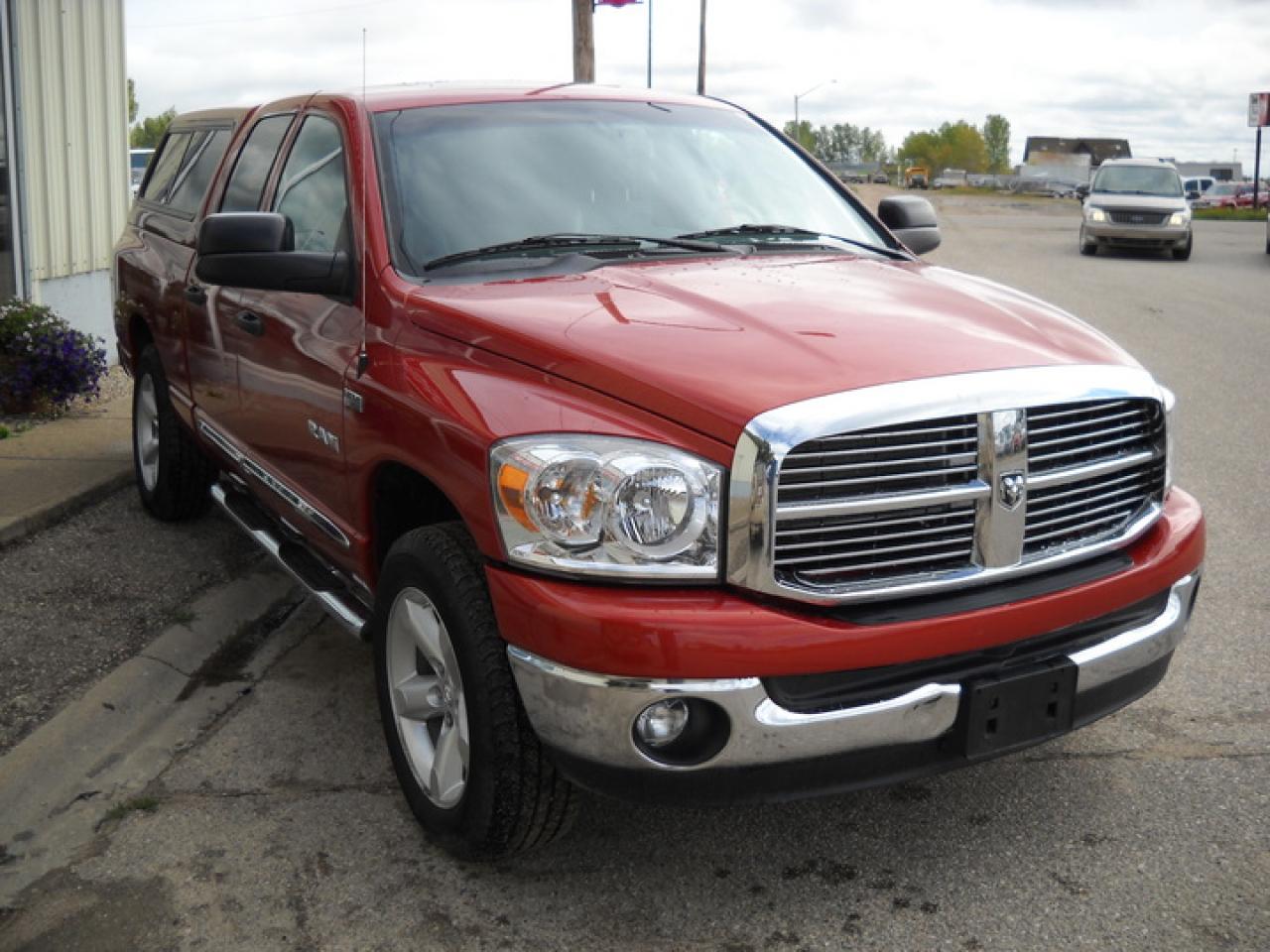 Fully Loaded 2008 Dodge Ram 1500 SLT Quad Cab 4x4! Low Mileage - Only 59,000 km's On The Powerful 5.7L 'Hemi' V8 Automatic! Includes Heated Leather, Power Sunroof, Infinity Audio System w/6-Disc CD/MP3 Player, U-Connect Hands Free Bluetooth, Factory Running Boards, Power Rear Sliding Window, Steering Wheel Mounted Audio Controls, Brake Controller, Tow Package, Fog Lights, Alloy Wheels + Much More! Call Us Toll Free @ 1-(888)-578-7657 or Visit Us Online @ www.southeymotors.com